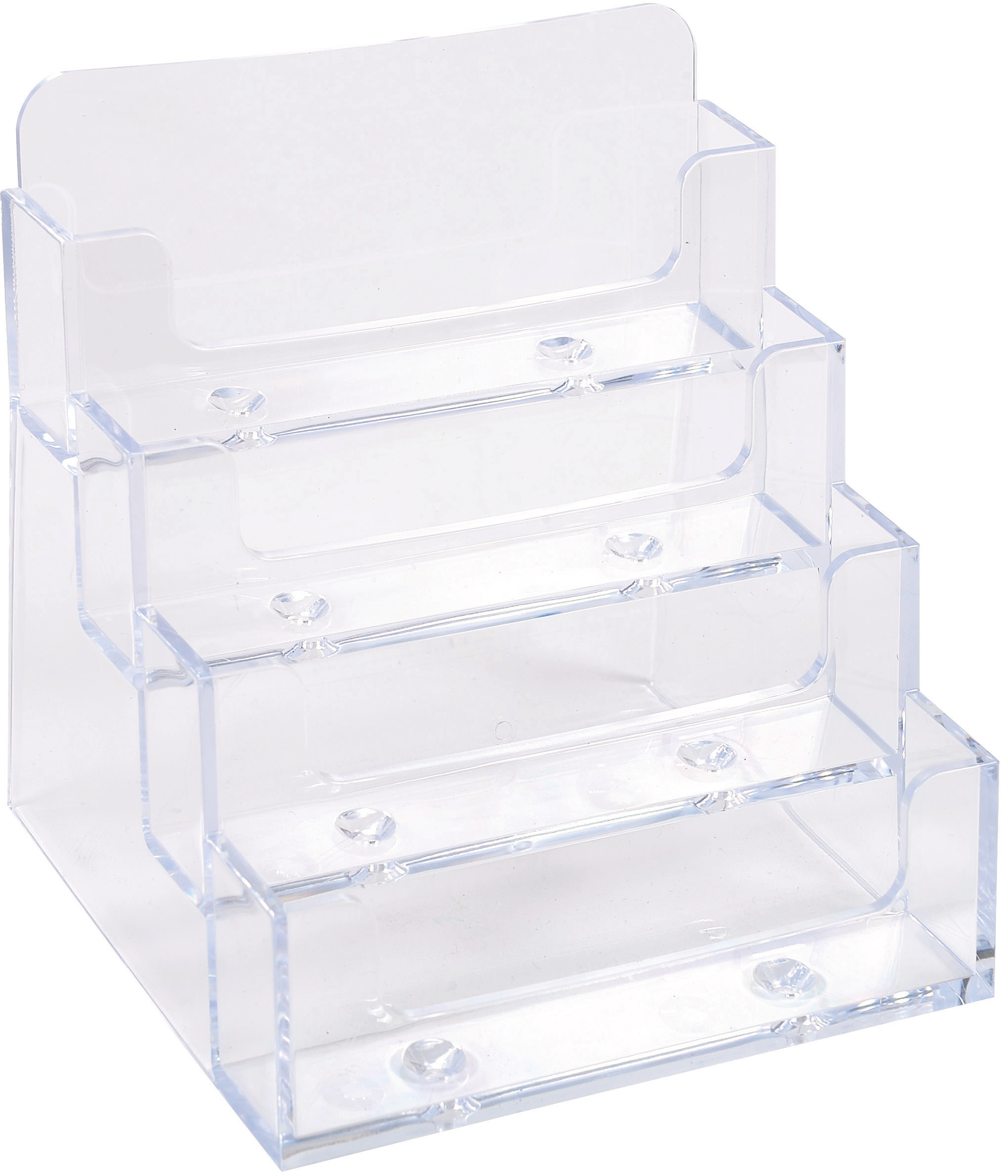 Mit dem Visitenkartenhalter aus transparentem Polystyrol können Sie Ihre Visitenkarten auf einem Tisch, Schreibtisch oder in einem Regal ansprechend aufbewahren und ausstellen.