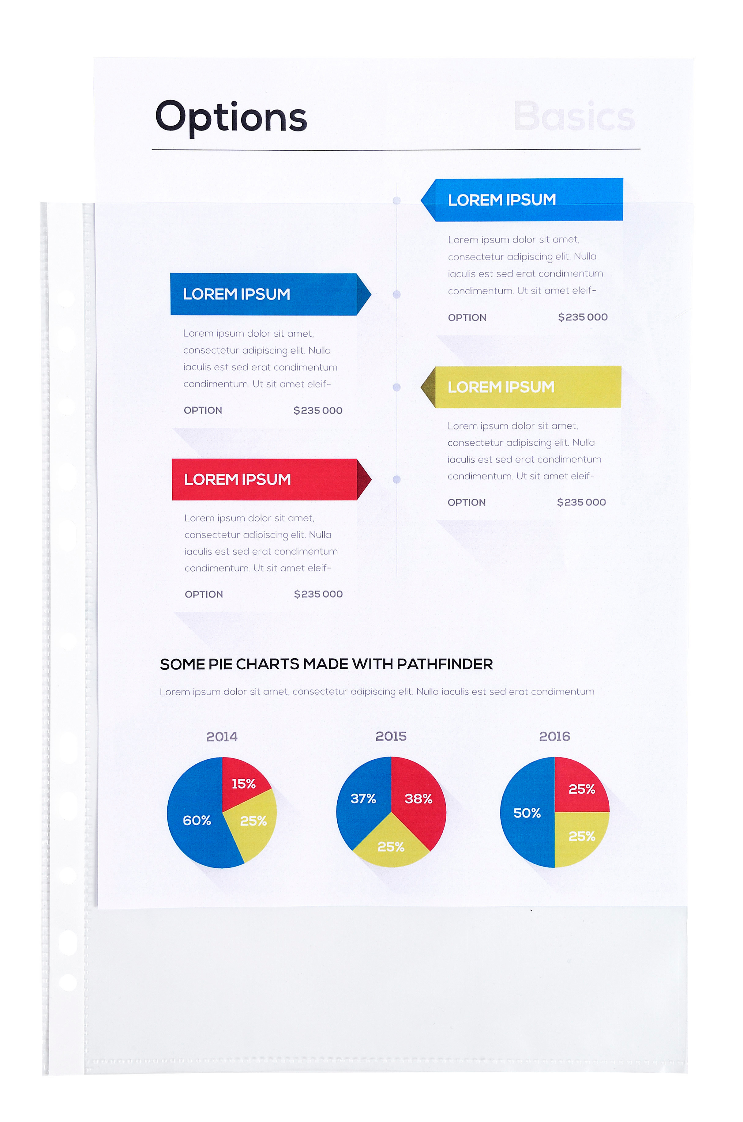 Packung mit 100 Zeigetaschen glatt und gelocht aus PP 60µ, DIN A4 Glatte Oberfläche, höchste Transparenz. Für eine schöne Präsentation Ihrer Dokumente. Öffnung oben.