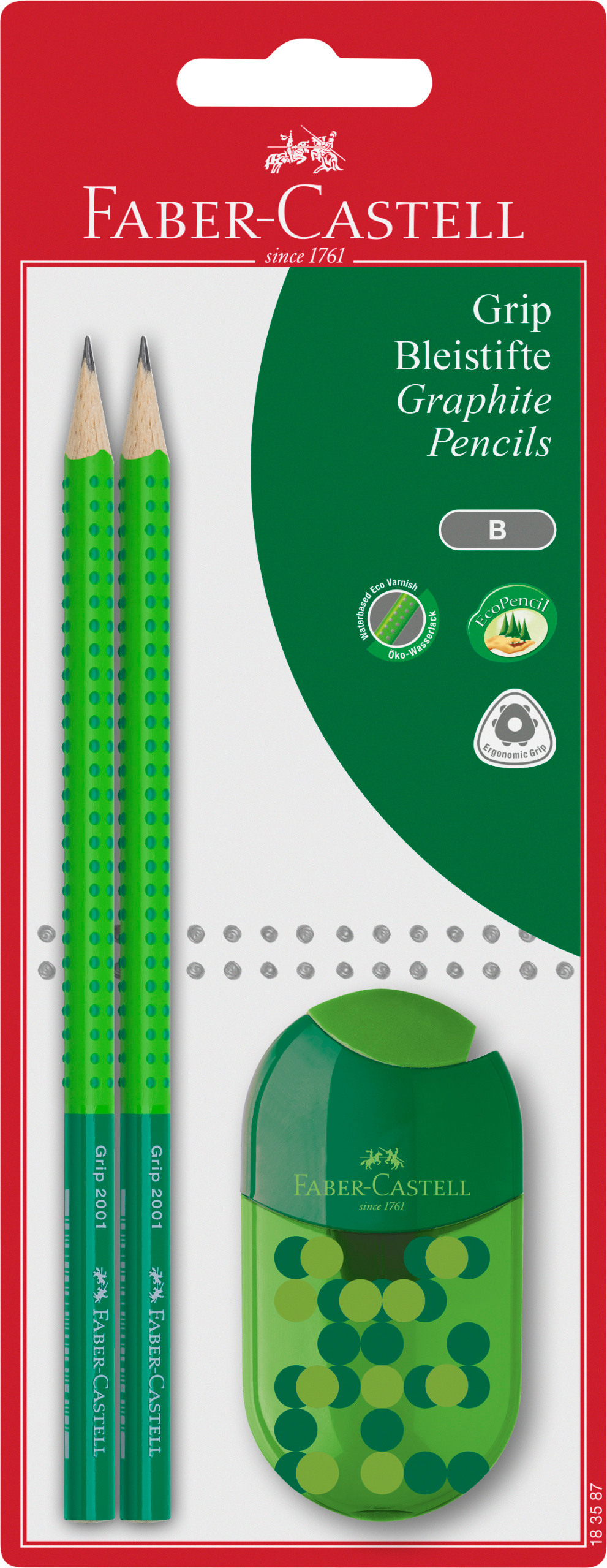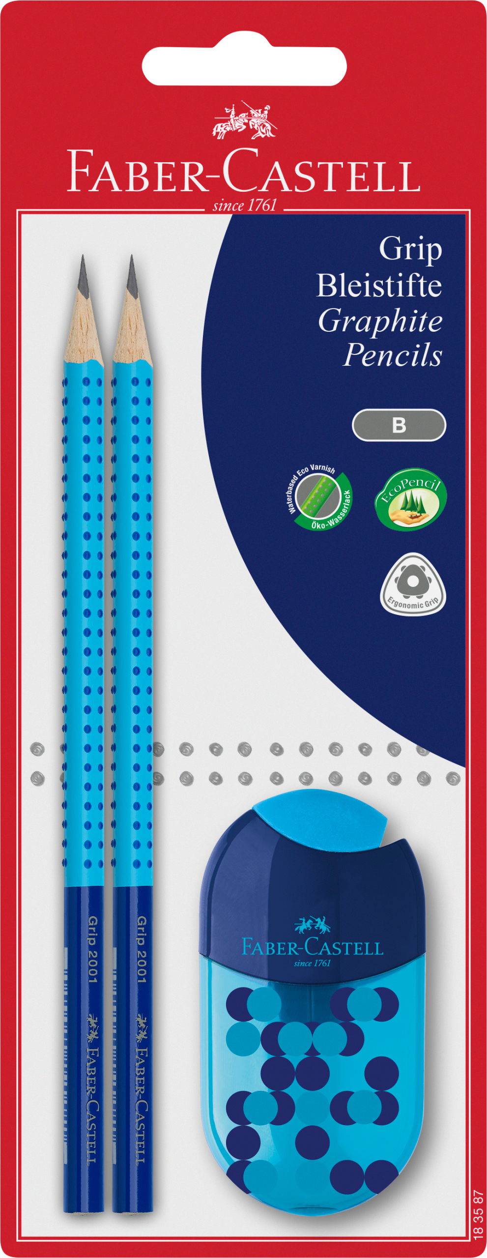 FABER-CASTELL Bleistift, Spitzer B 183587 Grip 2001 Set, 3 Farben