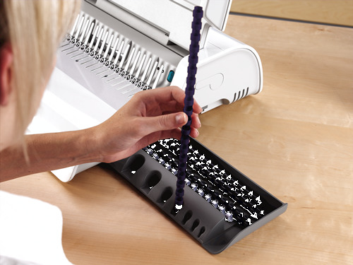 Stanzt elektrisch mühelos bis zu 15 Blatt (80g/qm) gleichzeitig und hat eine Bindekapazität von 300 Blatt mit maximal 38mm Plastikbinderücken. Der angewinkelte Kammträger erleichtert das Einlegen der Blätter. Einstellbarer Randanschlag zur genauen Ausrichtung des Papiers. Aufbewahrungsfach mit patentierter Dokument- und Binderückenmessfunktion zur schnellen Auswahl des passenden Binderückens. Das Stanzrestefach öffnet sich automatisch wenn es voll ist. Inklusive Starterkit für 10 Dokumente. 2 Jahre Garantie.