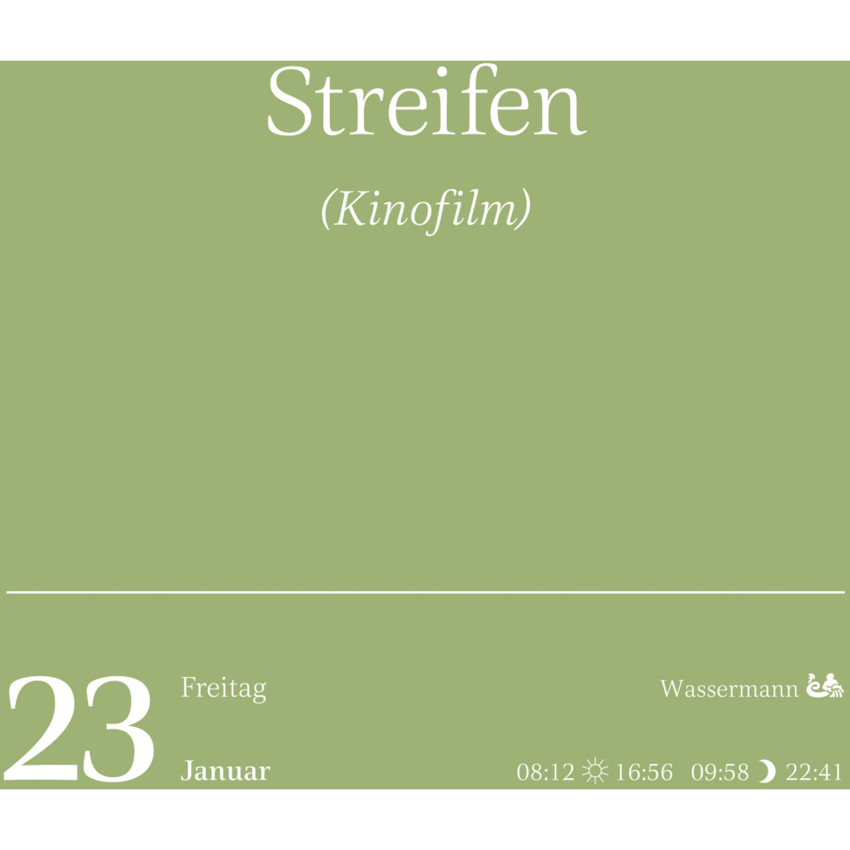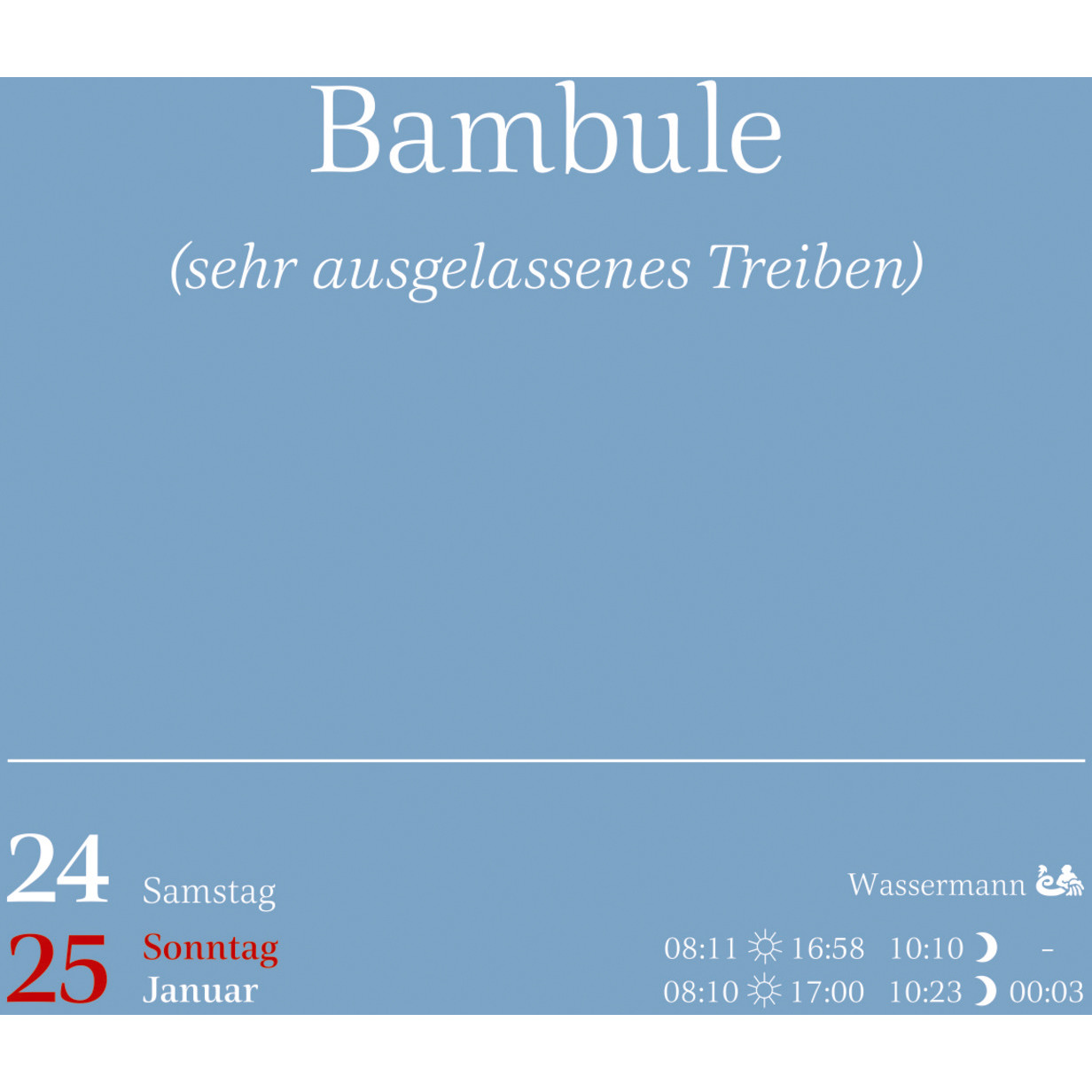 Abreisskalender für jeden Tag zum Aufstellen. Jeder Wochentag ein Kalenderblatt, Samstag/Sonntag auf einem Blatt
