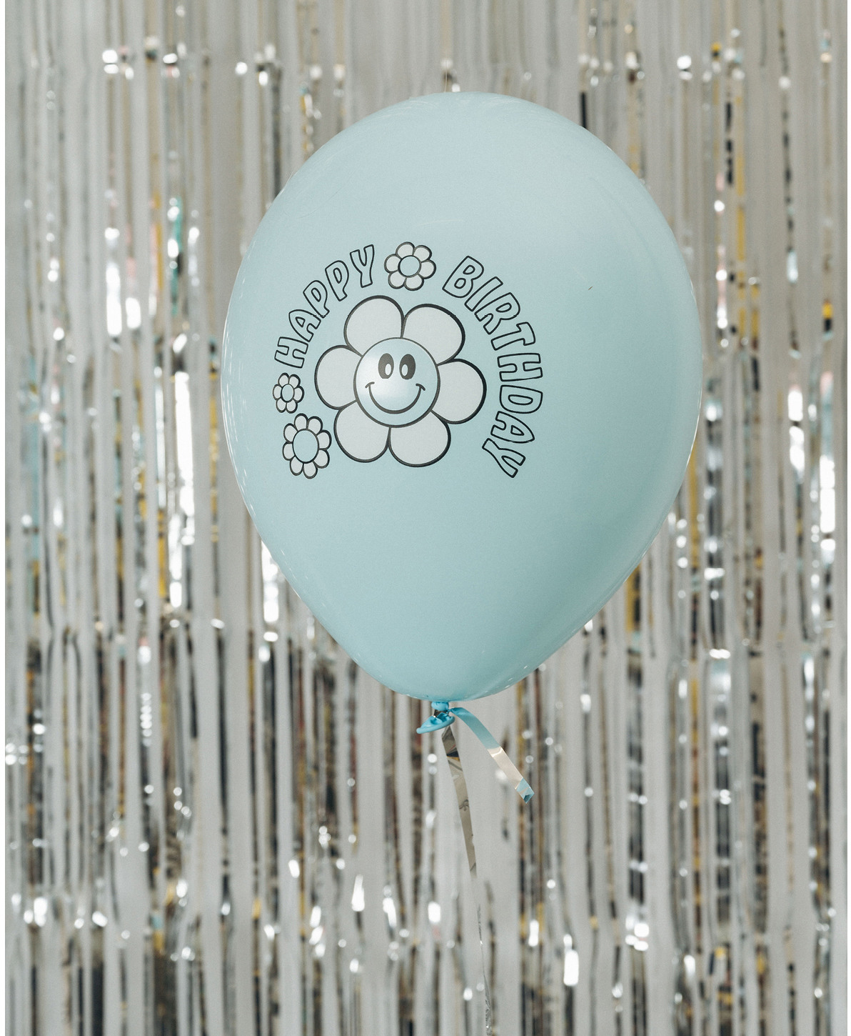 - Partyballone mit “Birthday Daisy” in Pastell Blau, Grün, Lila, Rosa, Gelb und Orange