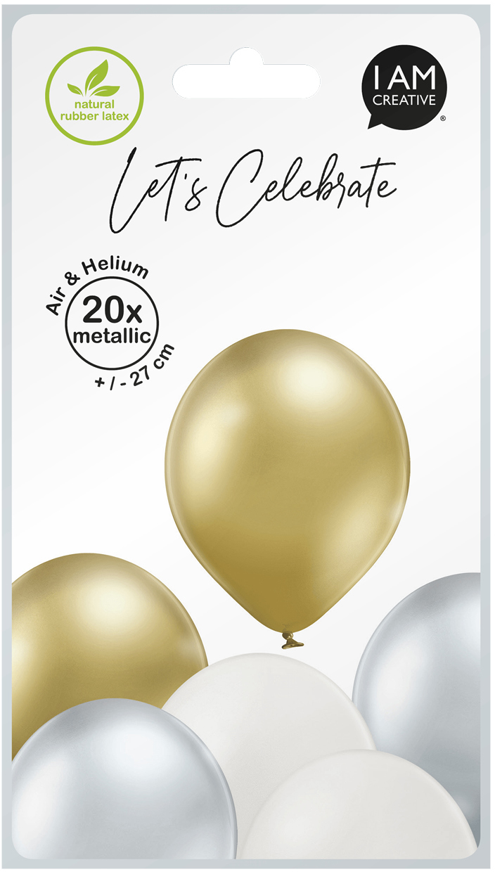 I AM CREATIVE Ballons Metallic Mix 27cm 1000-1058 creme, gold, silber 20 Stück