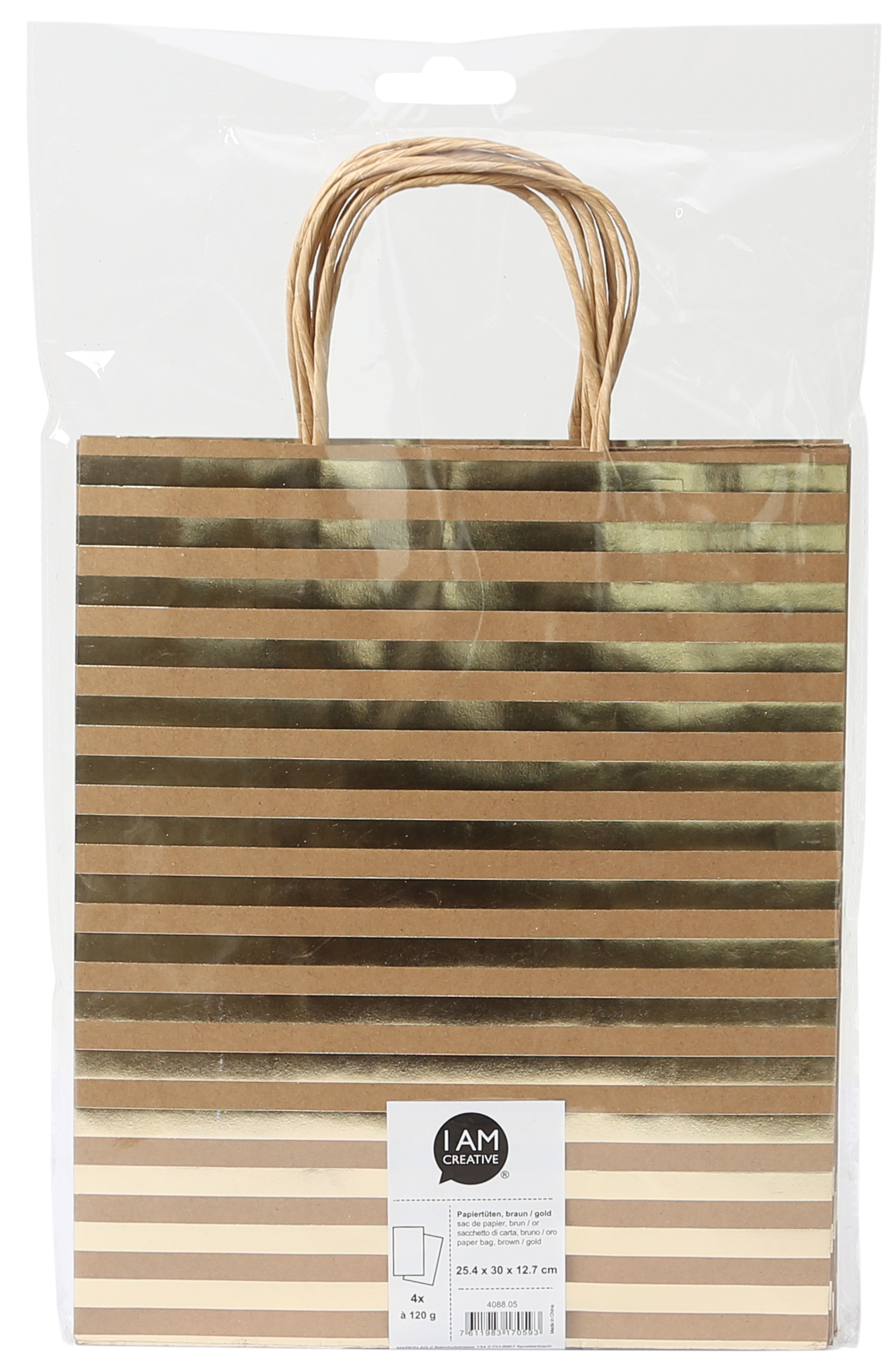 Produktinformationen "I AM CREATIVE Papiertüten, 4 Stück 4088.05 braun/gold, 25.4x30x12.7cm"