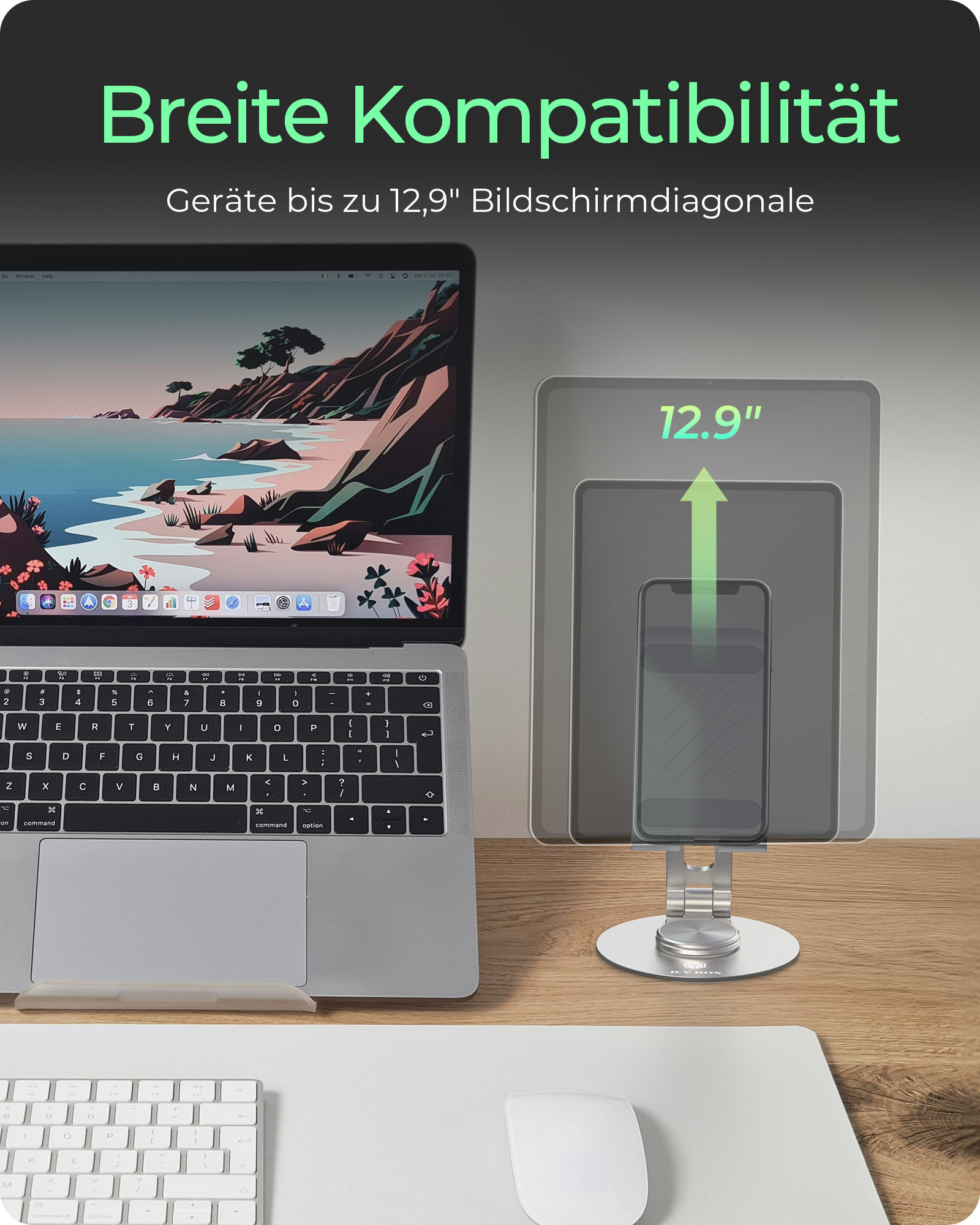 Produktinformationen "ICY BOX 360° rotatable and adjustable IB-TH201-R smartphone/tablet stand 12.9"
