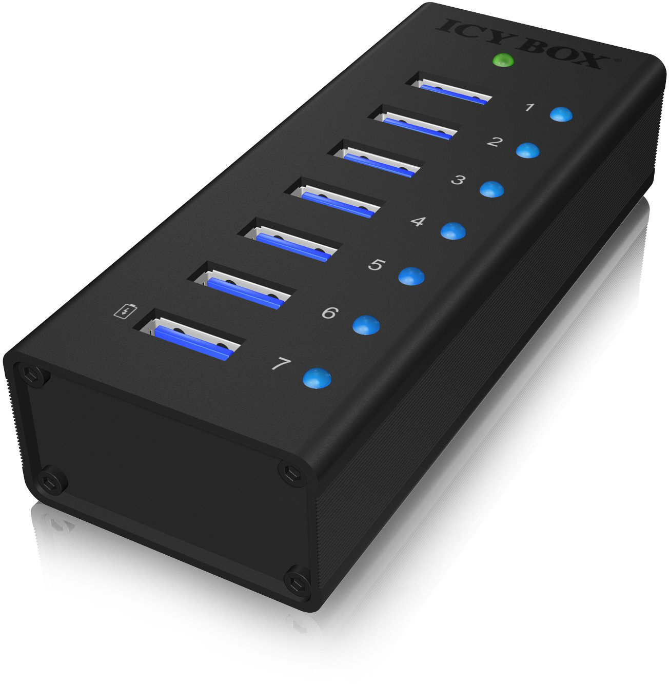 ICY BOX 7 Port Hub USB 3.0 IB-AC618 robust alluminium black