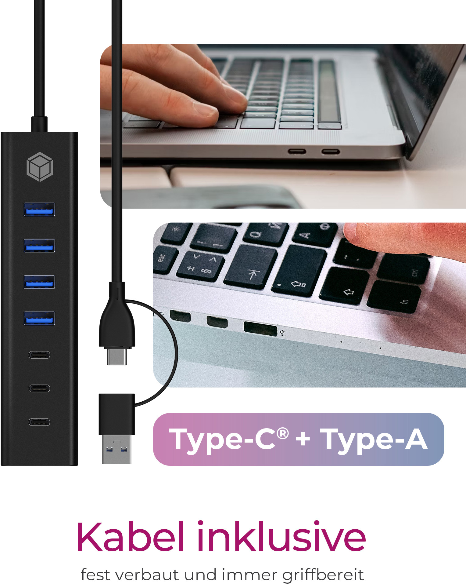 Produktinformationen "ICY BOX 7-Port USB 3.2 Gen 1 Hub IB-HUB1737-C3 3x USB-C & 4x USB-A"