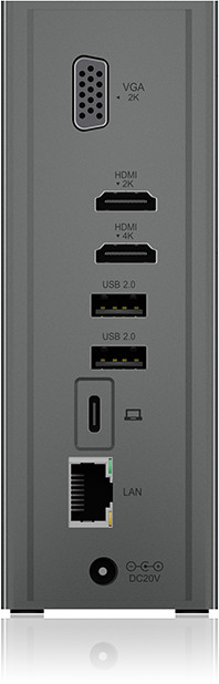 - Der 4K@60 HDMI 2-Port und VGA-Port sind kompatibel mit dem USB 3.0 Typ C Anschluss.