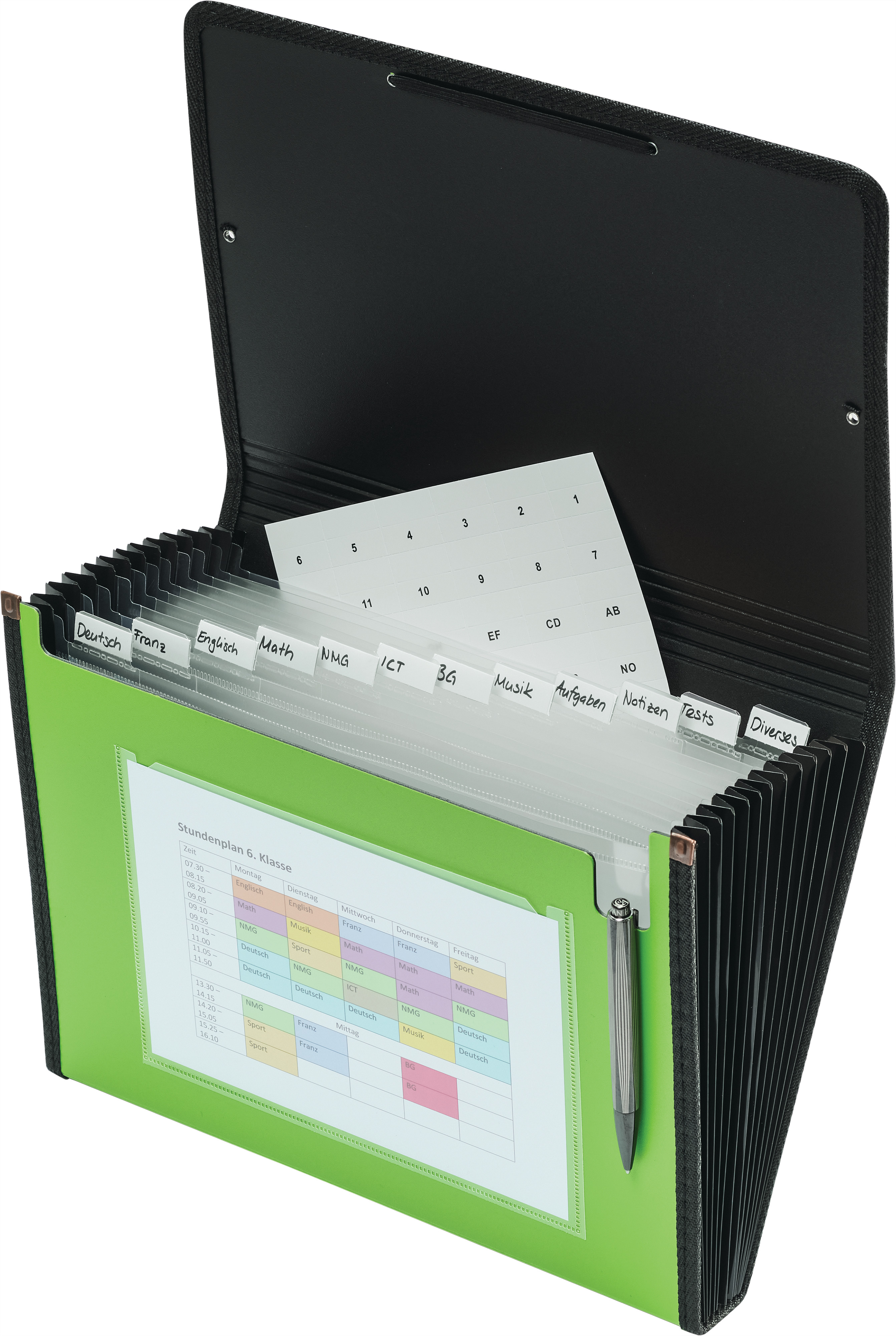 Die Fächermappe ist ideal zum Sortieren von pendenten Unterlagen im Tagesgeschäft oder für die Ablage von Sammlungen.