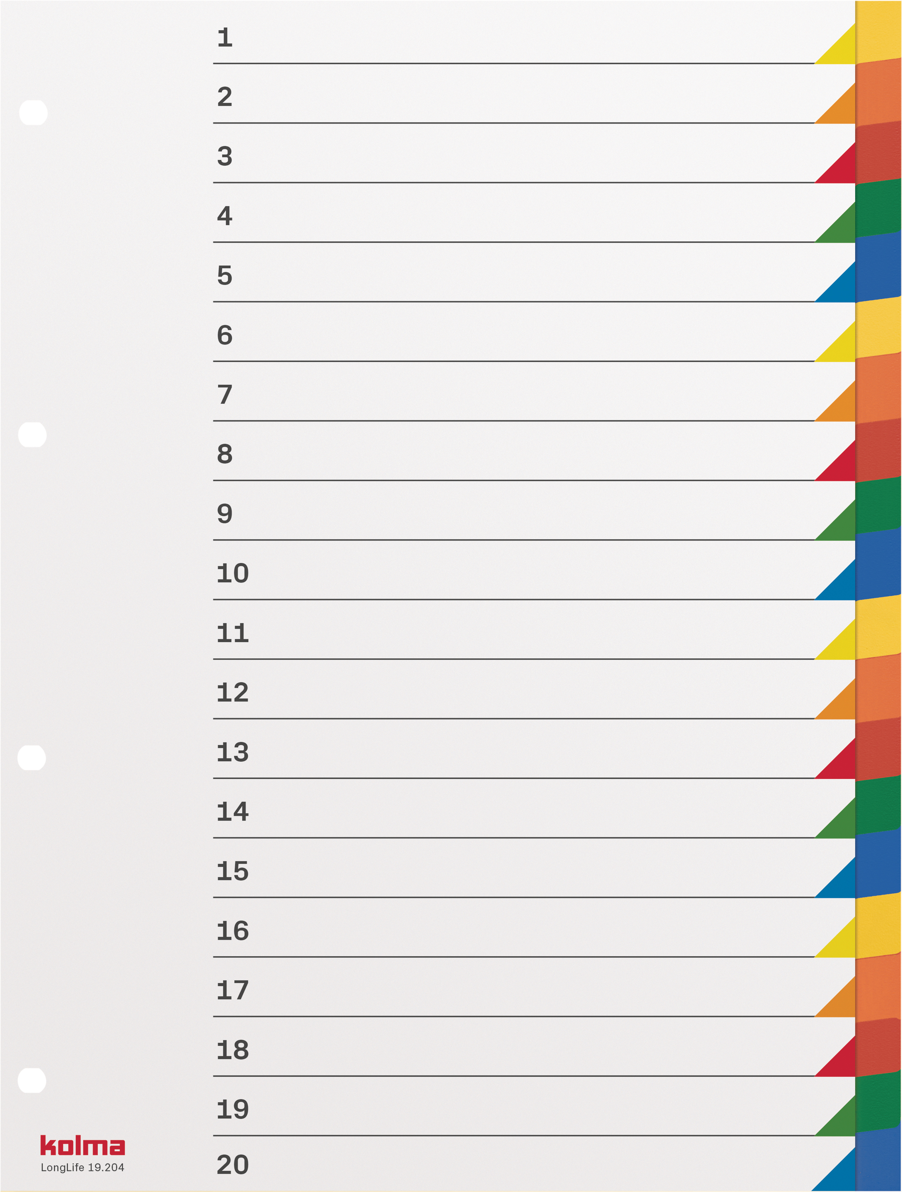Produktinformationen "KOLMA Register LongLife A4 19.204.20 mehrfarbig 20-teilig"