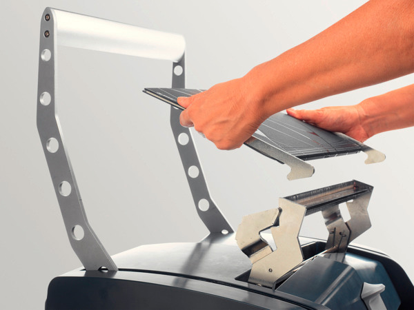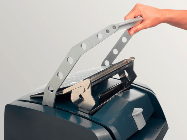 Der Ent-Binder öffnet die Metallklemmschiene, um Seiten aus dem Dokument zu entfernen oder einzufügen.