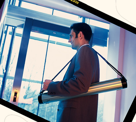 Hochwertiger Spender aus Aluminium mit universeller Aufhänge- und integrierter Schneidevorrichtung. Ausgestattet mit einer Folienrolle EasyFlip Foil Art.-Nr. 7050 und einem Tragegurt. Mit zweischneidigem Messer.