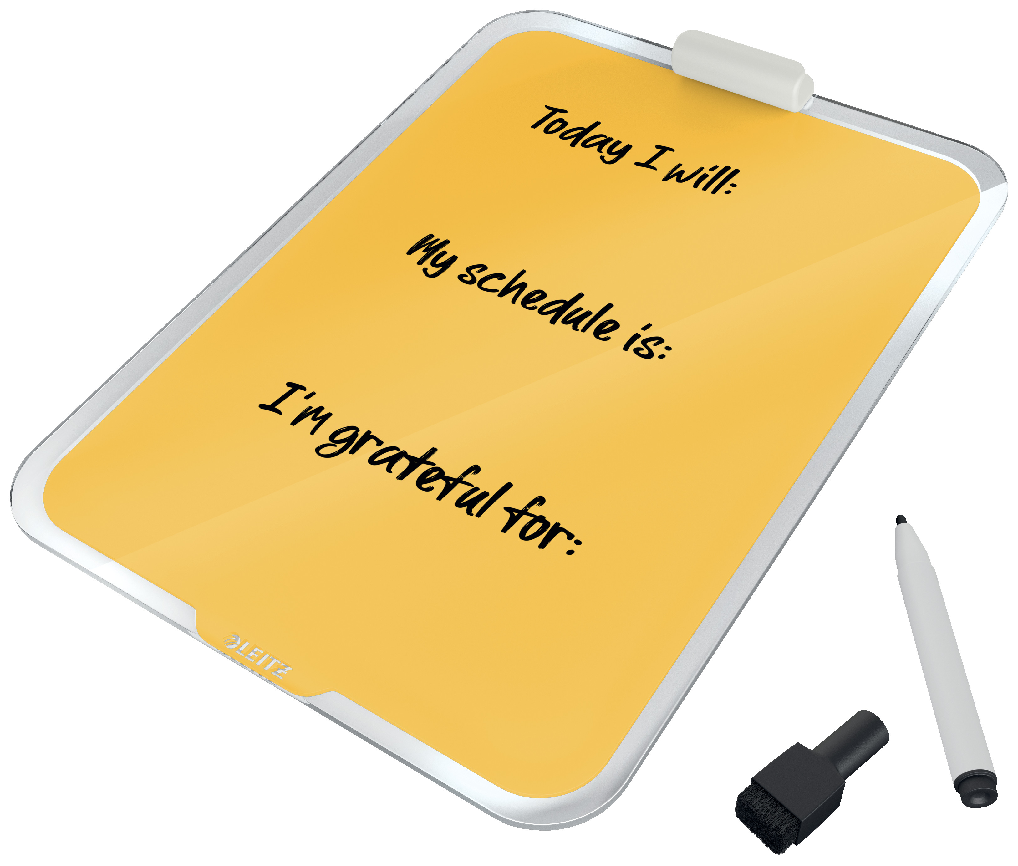 Fühlen Sie sich mit dem Cosy Sortiment von Leitz wie zu Hause, wo auch immer Sie sind. Mit seinem minimalistischen Design und den einladenden matten Farben können Sie Ihrem Arbeitsbereich Stil und Farbe verleihen. Das Cosy Desktop-Notizboard mit der trocken abwischbaren, leicht zu reinigenden Glasoberfläche kann immer wieder neu beschrieben werden. Das hochwertige Glasboard ist die perfekte Ergänzung für Ihr Zuhause oder Ihr Büro, damit Sie den ganzen Tag entspannt und produktiv bleiben.