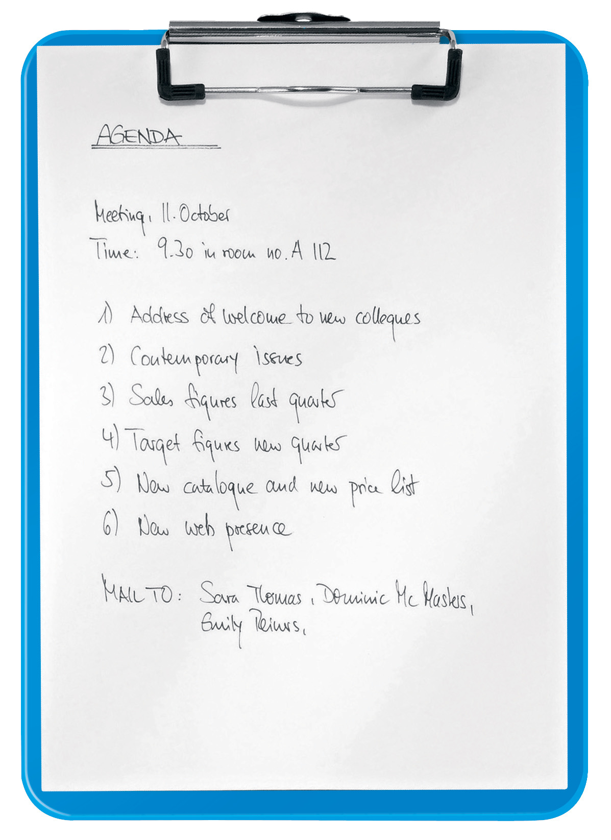 Hochwertiges Klemmbrett aus Polystyrol in brillanten WOW Farben. Ideal als Schreibunterlage unterwegs.