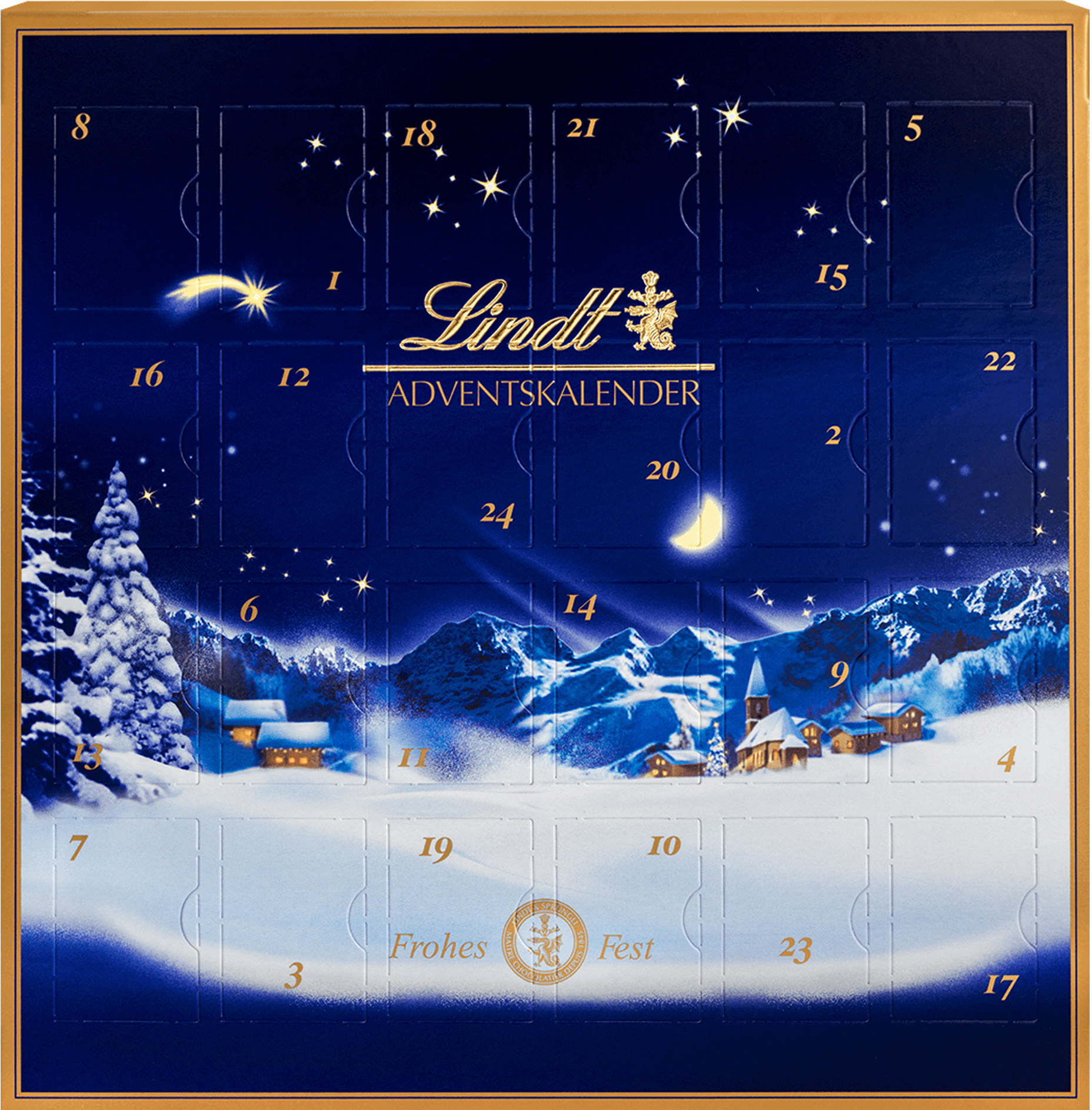 Der Lindt Winter Zauber-Adventskalender versüsst grossen Geniessern das Warten auf das Weihnachtsfest. Ob als Geschenk für andere oder sich selbst, mit dieser erlesenen Auswahl an Mini Kugeln wird die Adventszeit versüsst. Es sind Mini Kugeln in den Geschmackrichtungen LINDOR Milch und Surfin, Milschokolade, Doppelmilchcrème, Nusscème und Gianduja Vanille enthalten.