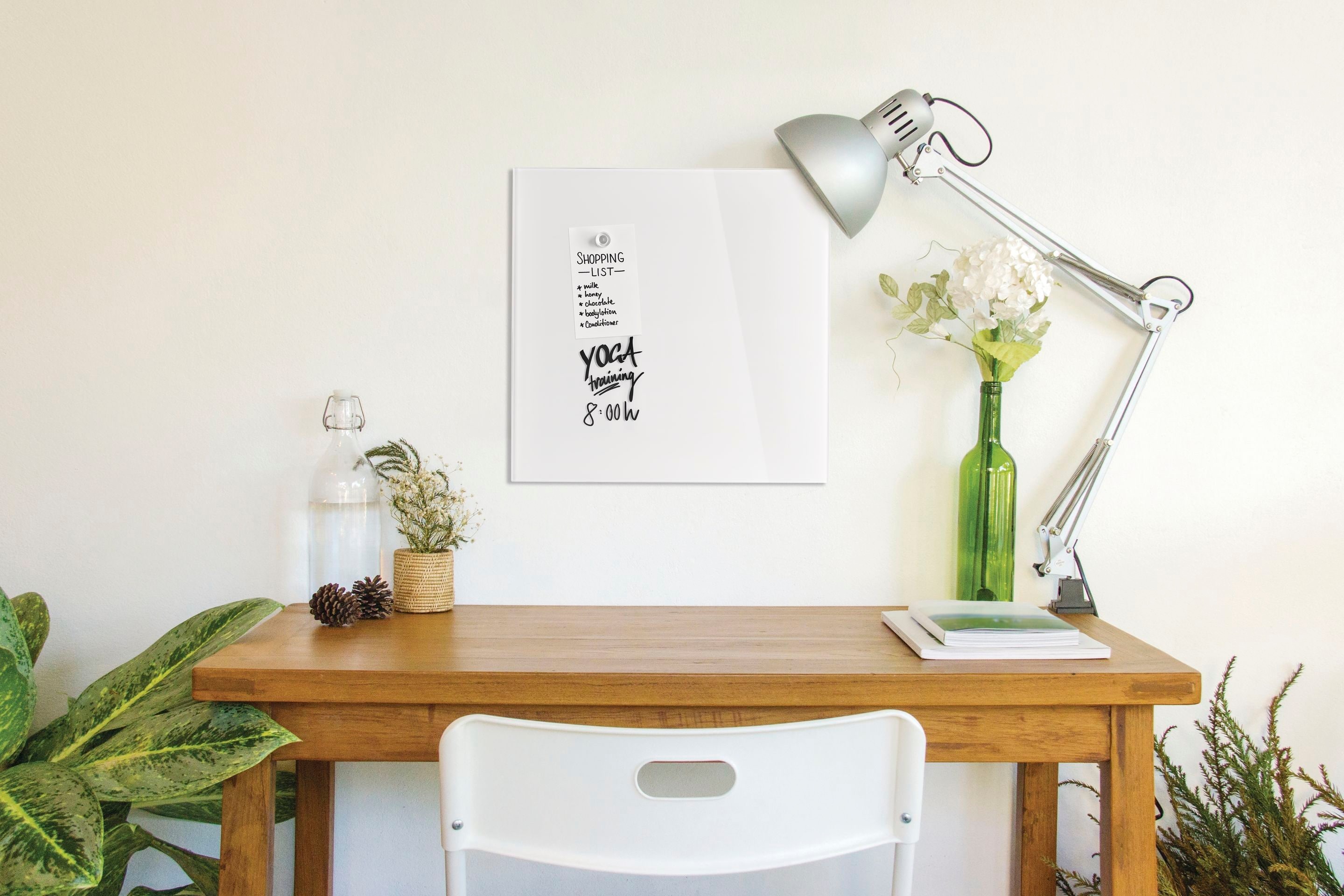 Glasboards sind die moderne, elegante Alternative zu herkömmlichen Whiteboards. Die stylischen Schreib- und Infotafeln für Büro + Privatbereich sind beschreibbar, Notizen, Fotos & Co lassen sich magnethaftend befestigen. Sie überzeugen durch das elegante + luxuriöse Erscheinungsbild mit purer Ästhetik. Gefertigt aus hochglänzendem ESG-Sicherheitsglas in Premium-Qualität, hängen sie frei schwebend vor der Wand. Die Boards lassen sich in jeder gewünschten Kombination montieren: Nebeneinander, untereinander oder im rechten Winkel zueinander. In brillant-weiss sowie den Trendfarben tief-schwarz und intensiv-rot, werden sie zum Eyecatcher an jeder Wand. Durch ihre Farbe, Form und das ansprechende Erscheinungsbild fügen sich die Glasboards perfekt in jede Inneneinrichtung ein. Mehr noch: Sie geben jedem Raum eine moderne, individuelle Note.