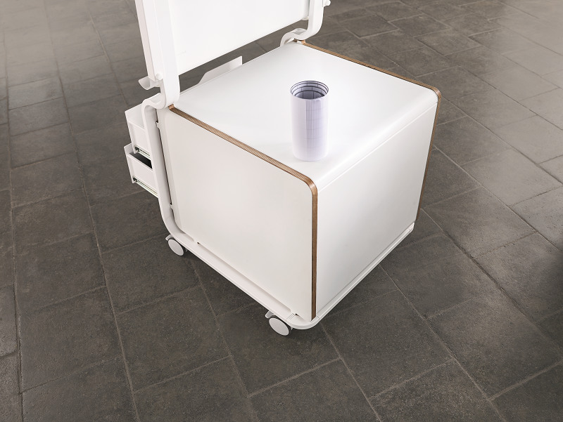 - Ein integrierter Zylinder (Ø 9 cm) bietet gerolltem Flipchart-Papier einen festen Platz und vollendet die hohe Funktionalität des Design-Möbels