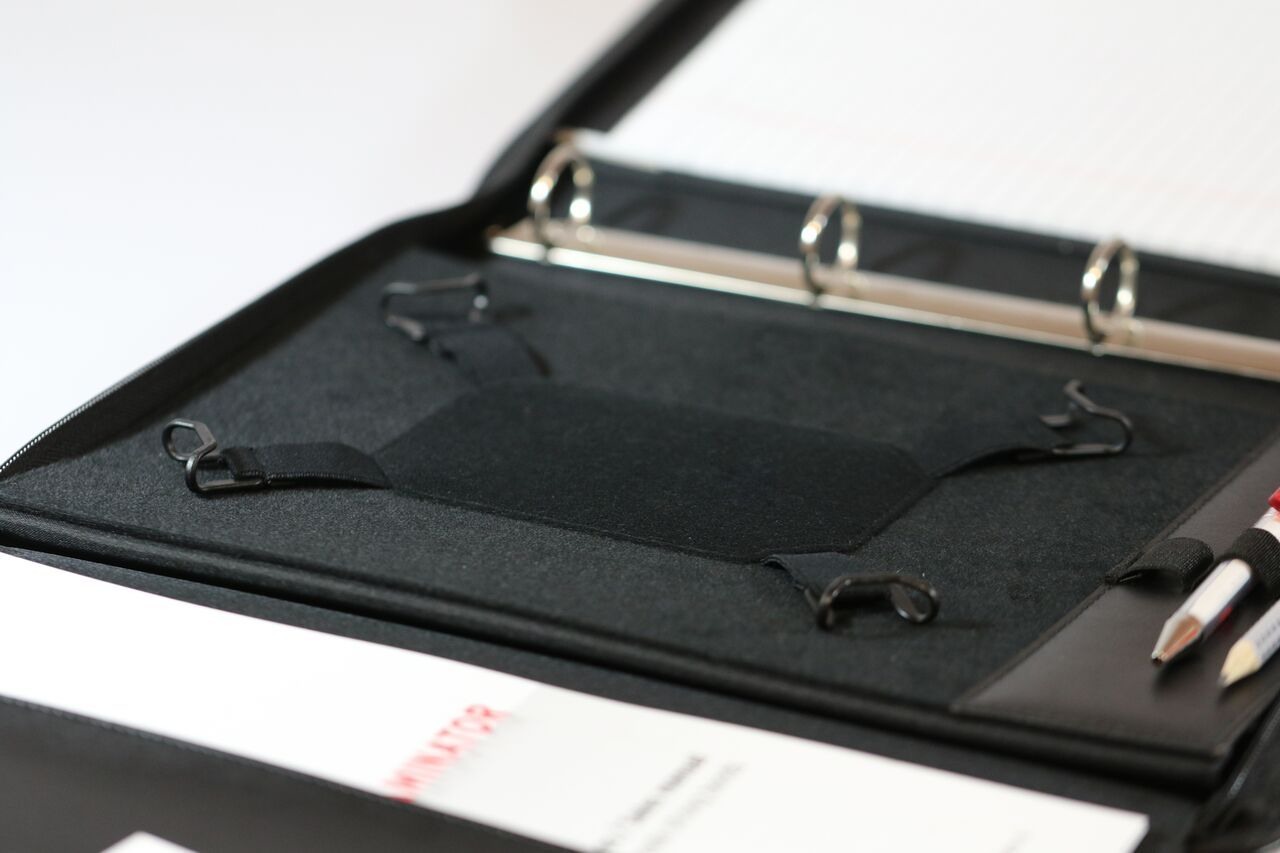 Die elegante Monolith Schreibmappe A4 aus Kunstleder ist der ideale Begleiter zu Geschäftsterminen oder für unterwegs. Die 3-teilige Mappe mit Steppnähten und Lederoptik bietet Schutz für Ihre Büroutensilien, verfügt über eine Ringmechanik zum Einordnen von wichtigen Dokumenten und ist ausserdem mit zusätzlichen Fächern für Kredit- und Visitenkarten ausgestattet. Durch den Reissverschluss sind ihre Dokumente einwandfrei geschützt. Mit dem integrierten Tabletfach, Taschenrechner und dem mitgelieferten Notizblock ist das mobile Büro immer da wo man es braucht.