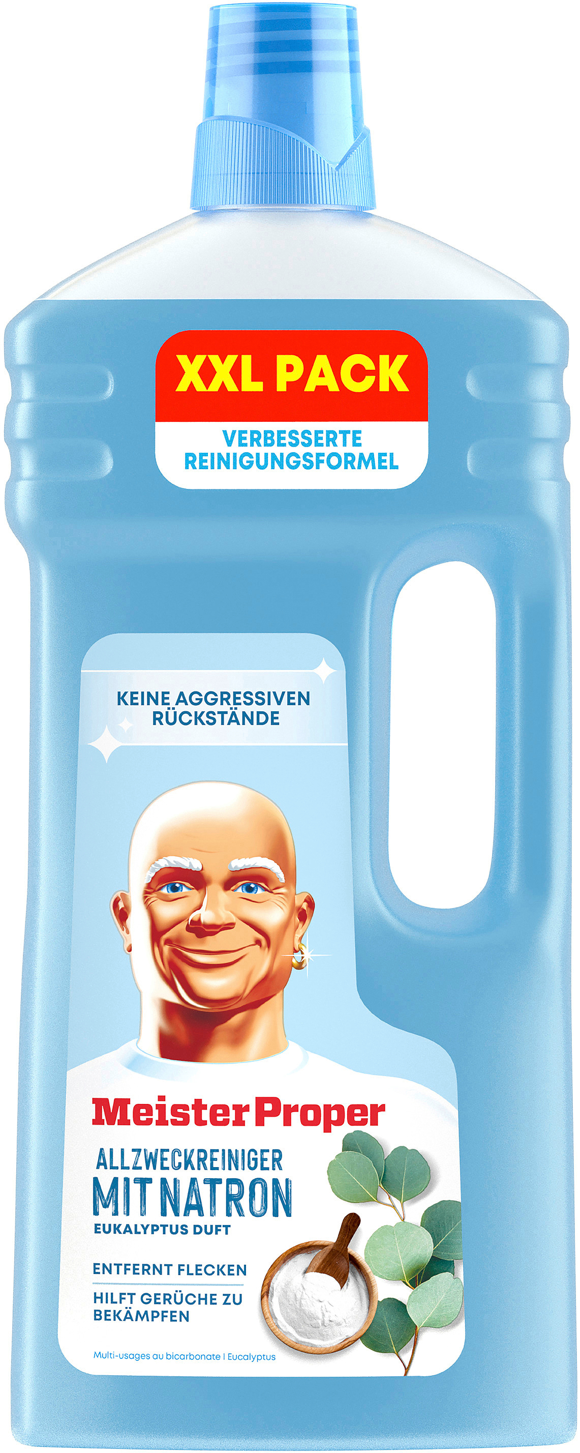 Meister Proper Allzweckreiniger eignet sich perfekt für die Reinigung fast aller glatten Oberflächen in Ihrem Zuhause. Er kombiniert die Reinigungskraft von Meister Proper mit der Verwendung authentischer Inhaltsstoffe. Sie können ihn für das Waschbecken, fettverschmutzte Herdplatten und sogar als Bodenreiniger verwenden. Er hinterlässt keine Streifen. Verleiht Ihrem Zuhause einen angenehmen Duft von Natron und Eukalyptus.