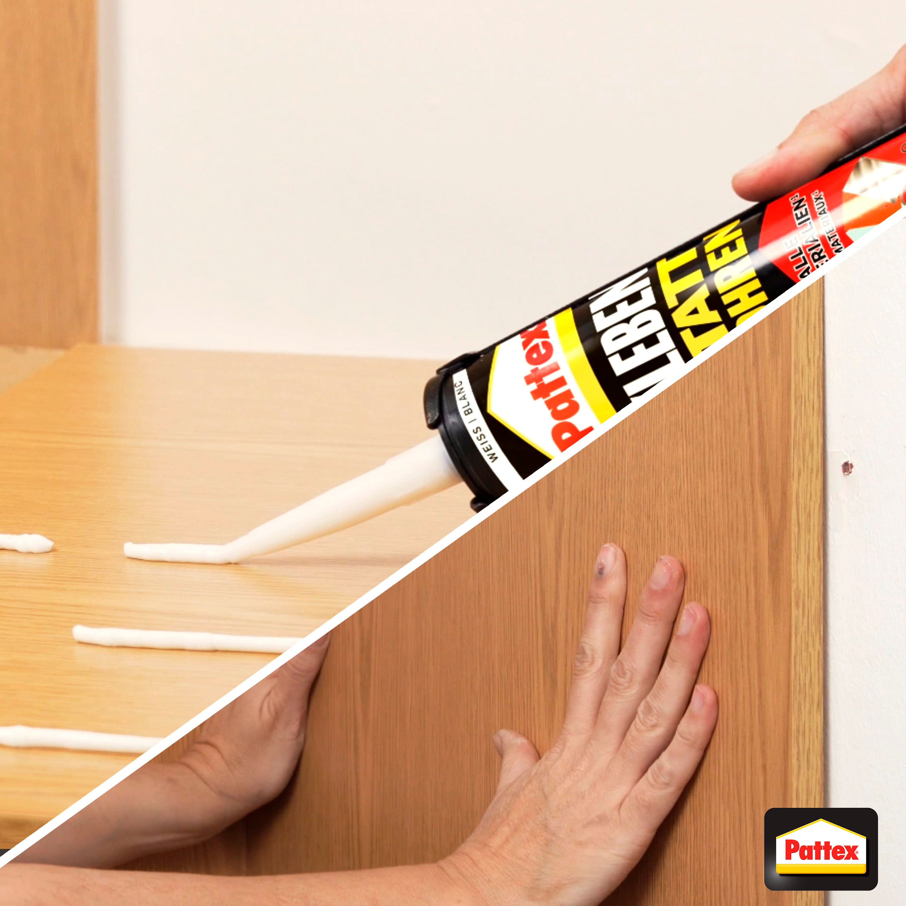 PATTEX Montagekleber Kleben statt Bohren High Tack eignet sich durch seine hohe Anfangshaftung besonders für schwere Klebeprojekte. Der Kraftkleber eignet sich zum Kleben, Montieren und Füllen von Spalten. Der Kleber ist auf den meisten Untergründen und Materialien anwendbar, etwa als Holzkleber, Keramikkleber oder auf Beton, Ziegel, Glas und vielem mehr.