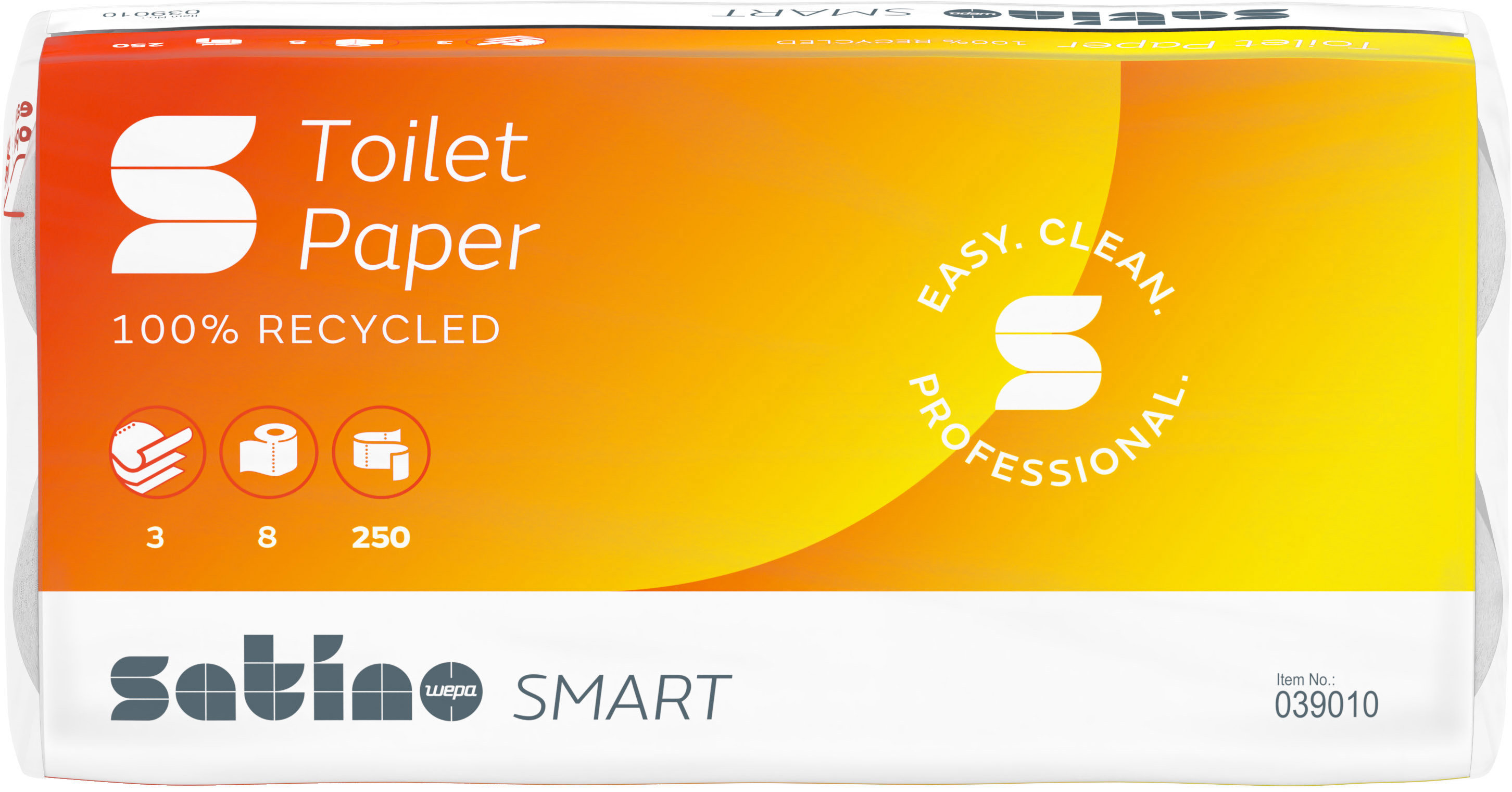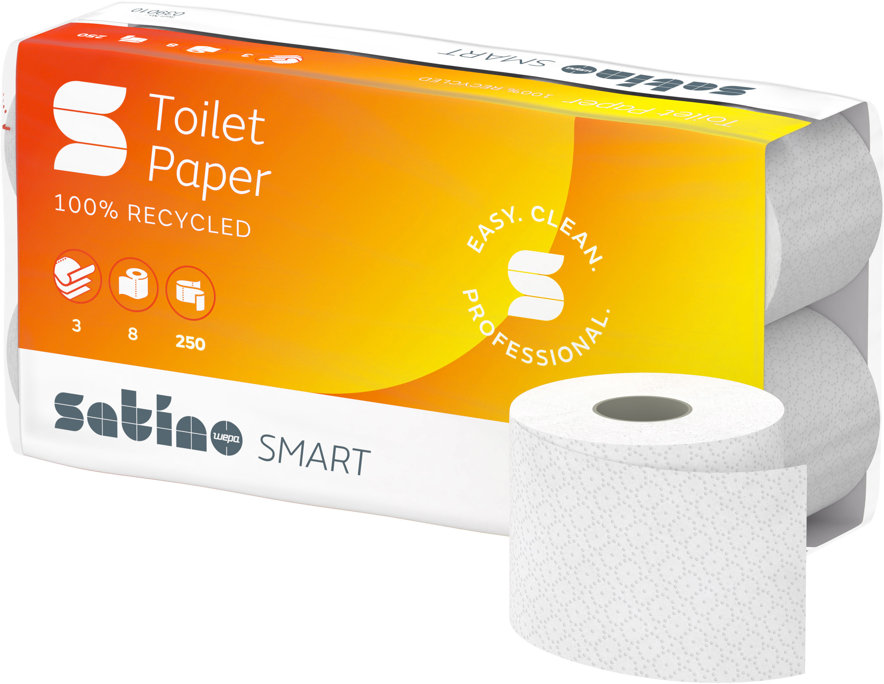 Satino Smart, 3-lagig mit Flächenprägung, 100% Recycling ideal für hochfrequentierte Toiletten, naturweiss.