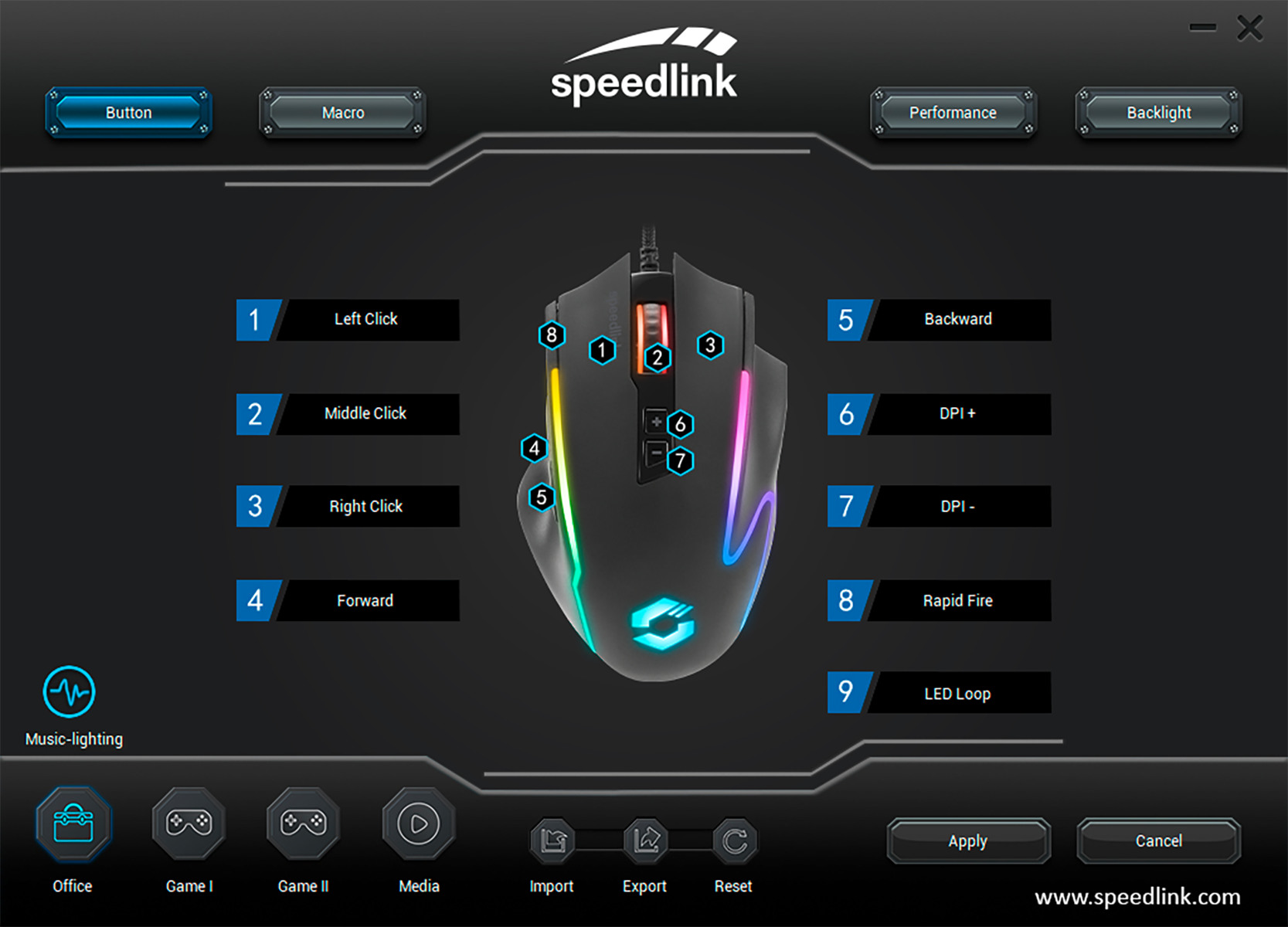 SPEEDLINK DECUS NX Gaming Mouse RGB SL-680024-RRBK Wired, Rubber-Black