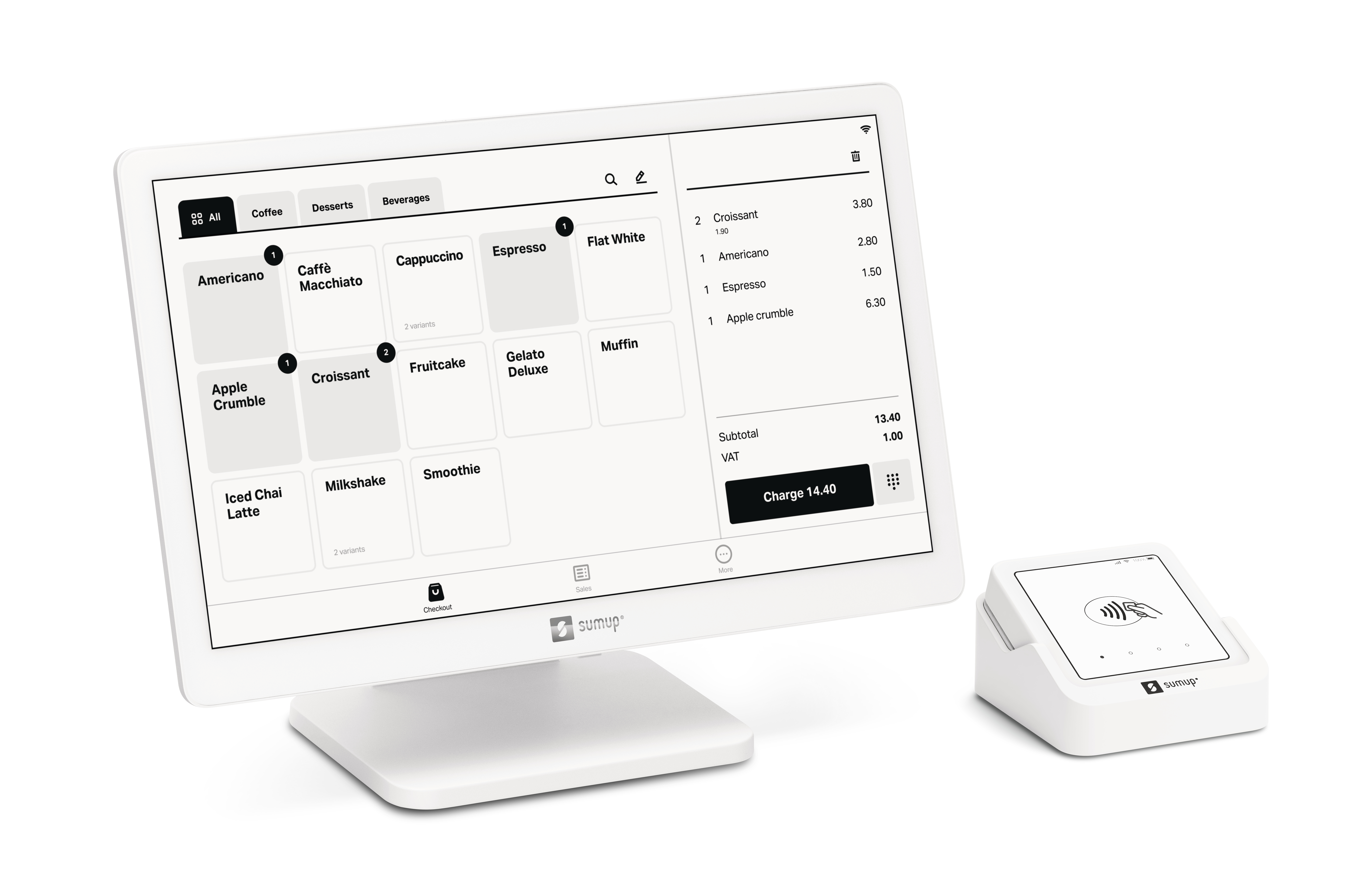 - Im Lieferumfang enthalten ist ein SumUp Solo, unser innovativstes Kartenterminal mit intuitiver Touchscreen-Benutzeroberfläche, intelligenter Trinkgeldfunktion und Ladestation. Sie und Ihre Kundschaft profitieren von einem völlig nahtlosen Zahlungserlebni