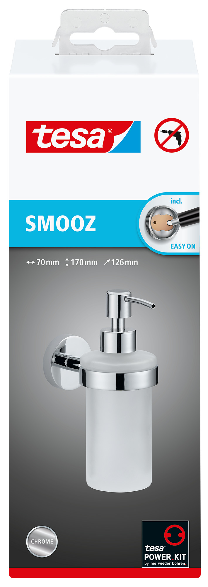 - Seifenspender mit patentierter tesa® Power.Kit Befestigungstechnologie
