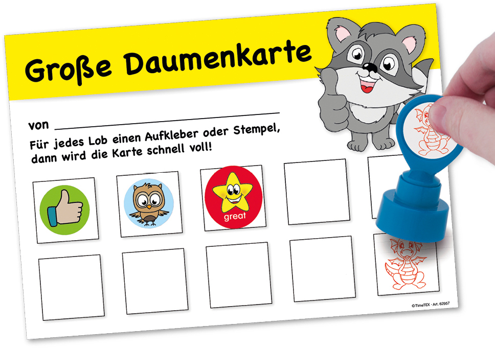 Der beste Anreiz für Kinder zu lernen sowie ihr positives Verhalten und ihre Leistung zu verstärken, ist eine Belohnung. Das Belohnungssystem, bestehend aus Kärtchen und Aufklebern, macht dies optisch eindrucksvoll deutlich. Die Lehrkraft legt z.B. für jedes Kind ein Sammelkärtchen an, das Platz für 10 Sticker bietet. Als kleine Belohnung dürfen die Kinder sich jeweils einen Aufkleber aussuchen, der dann in das Kärtchen geklebt wird. Wer sein Kärtchen voll hat, bekommt dies als Auszeichnung überreicht.