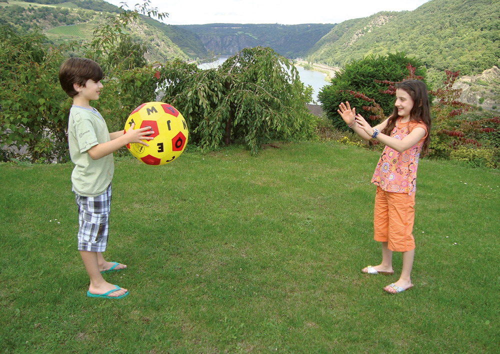 Die Lernspiel-Bälle wurden unter dem Motto spielen, bewegen und lernen entwickelt. Bewegungsanreize wirken sich sehr positiv auf die körperliche und geistige Entwicklung bei Kindern aus. Darüber hinaus fördert das Spiel die Entwicklung der Sozialkompetenz. Die Lernspiel-Bälle fungieren als Bindeglied zwischen der kognitiven und motorischen Entwicklung. Die Schüler können sich eigenständig, in Partnerarbeit oder in der Gruppe mit dem Ball beschäftigen. Er ist sowohl im Klassenzimmer als auch im Freien einsetzbar. Die Lernspiel-Bälle sind sehr leicht und eignen sich hervorragend für Fang- und Wurfspiele. Sie bestehen aus einer Stoffhülle (100% Polyester), in die ein spezieller Luftballon gesteckt und aufgeblasen wird. Inhalt: Lernspiel-Ball, Stoffhülle, ca. 35 cm ø , 2 Spezial-Luftballons mit Mundstück zum Aufblasen, ausführliche Spielanleitung. Spiel-Tipp: Die Kinder werfen sich den Ball gegenseitig zu. Beantwortet wird immer die Aufgabe, auf die beim Fangen der rechte Daumen zeigt. Beim ABC-Ball z.B. auf einen Buchstaben. Von diesem sind dann Wörter zu bilden, Stadt/Land/Fluss spielen usw.