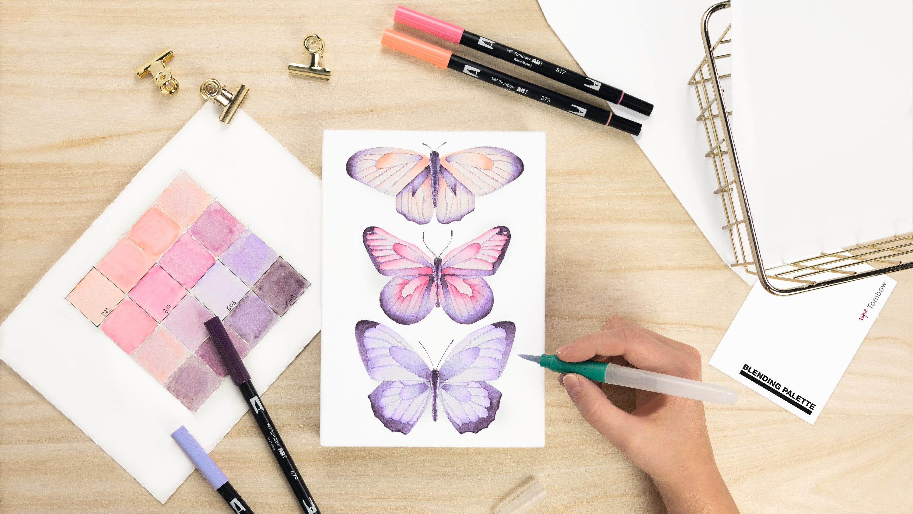 Das Watercoloring-Leinwand-Set enthält zwei faltbare Leinwände aus Karton, eine Auswahl an Tombow-Materialien und eine Anleitung zum Erstellen von individuellen Bildern zum Aufhängen. Das Set enthält: -4 ABT Dual Brush Pens mit zwei Spitzen. Die Farben können miteinander vermischt werden und sind aquarellierbar. -Ein nachfüllbarer Wassertankpinsel (leer) zum Malen mit den Farben auf Wasserbasis der ABT Dual Brush Pens. - Eine Blending Palette zum Mischen und Aufnehmen der Farben. - Zwei weisse, faltbare Leinwände aus Karton von BUNTBOX. Grösse: 21 cm x 14,8 cm (zusammengefaltet). Kartonstärke: 350 g/m². Aus 100 % recyceltem Karton. Sobald das Kunstwerk getrocknet ist, kann die Leinwand einfach zusammengefaltet und aufgehängt werden. Inhalt Watercoloring-Leinwand-Set: -1x ABT Dual Brush Pen 603 / periwinkle -1x ABT Dual Brush Pen 679 / dark plum -1x ABT Dual Brush Pen 817 / mauve -1x ABT Dual Brush Pen 817 / coral -1x Wassertankpinsel WB-ME-1P / mittel -1x Blending Palette -2x Leinwand aus Karton