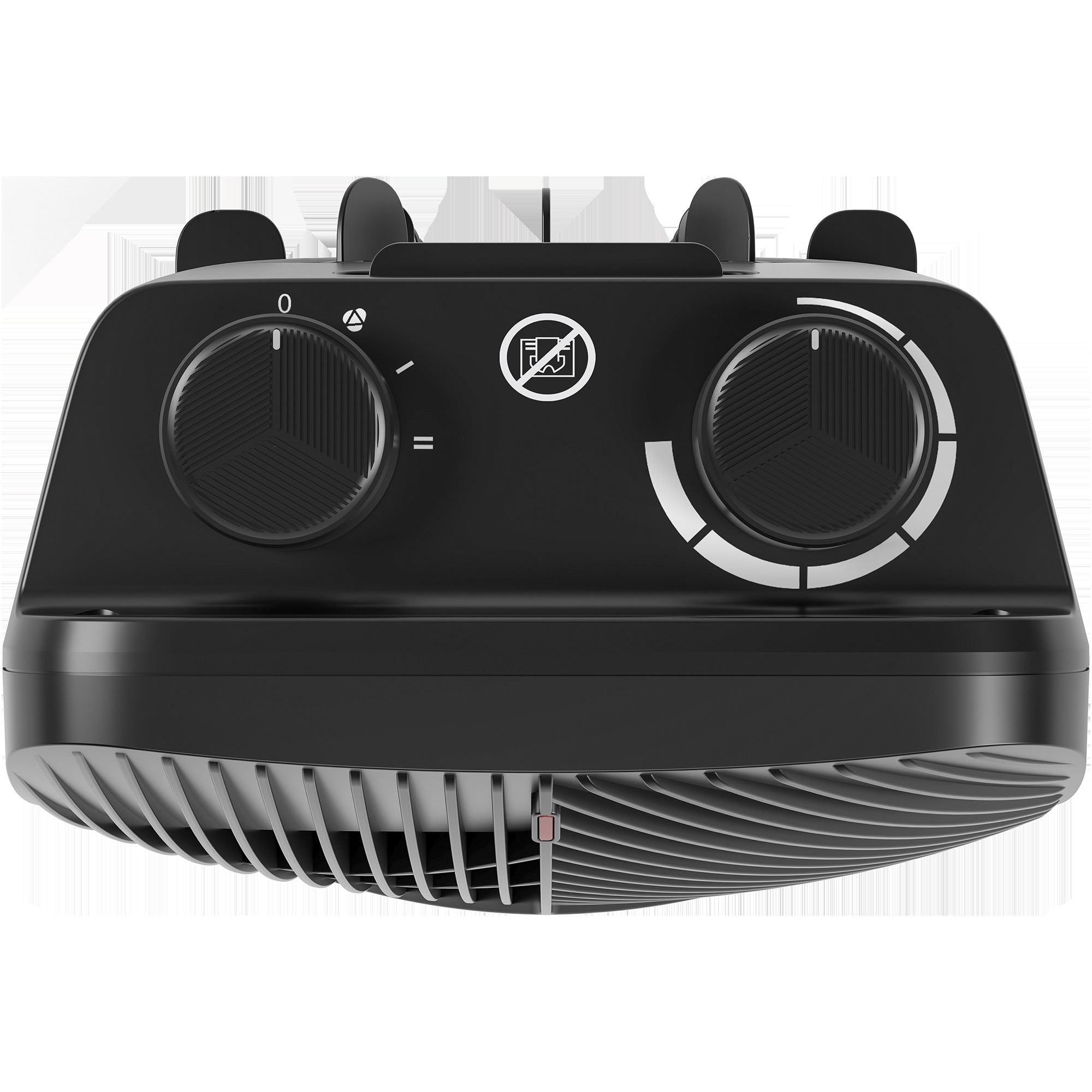 Einfach zu bedienender schwarzer Heizlüfter. Der Ventilator verteilt die heisse Luft in dem zu beheizenden Bereich. Dieses Gerät kann auch als Ventilator verwendet werden, um den Raum zu kühlen. Mit dem Griff kann dieser Heizlüfter leicht bewegt werden.