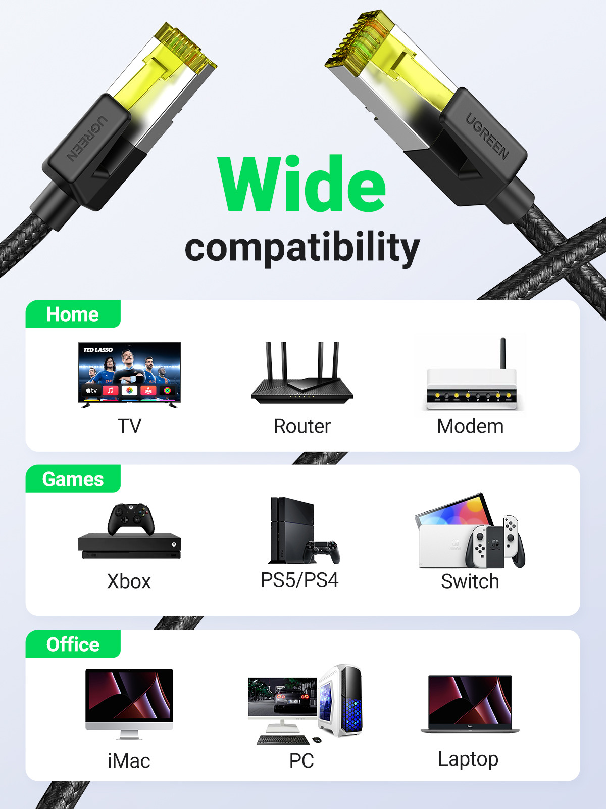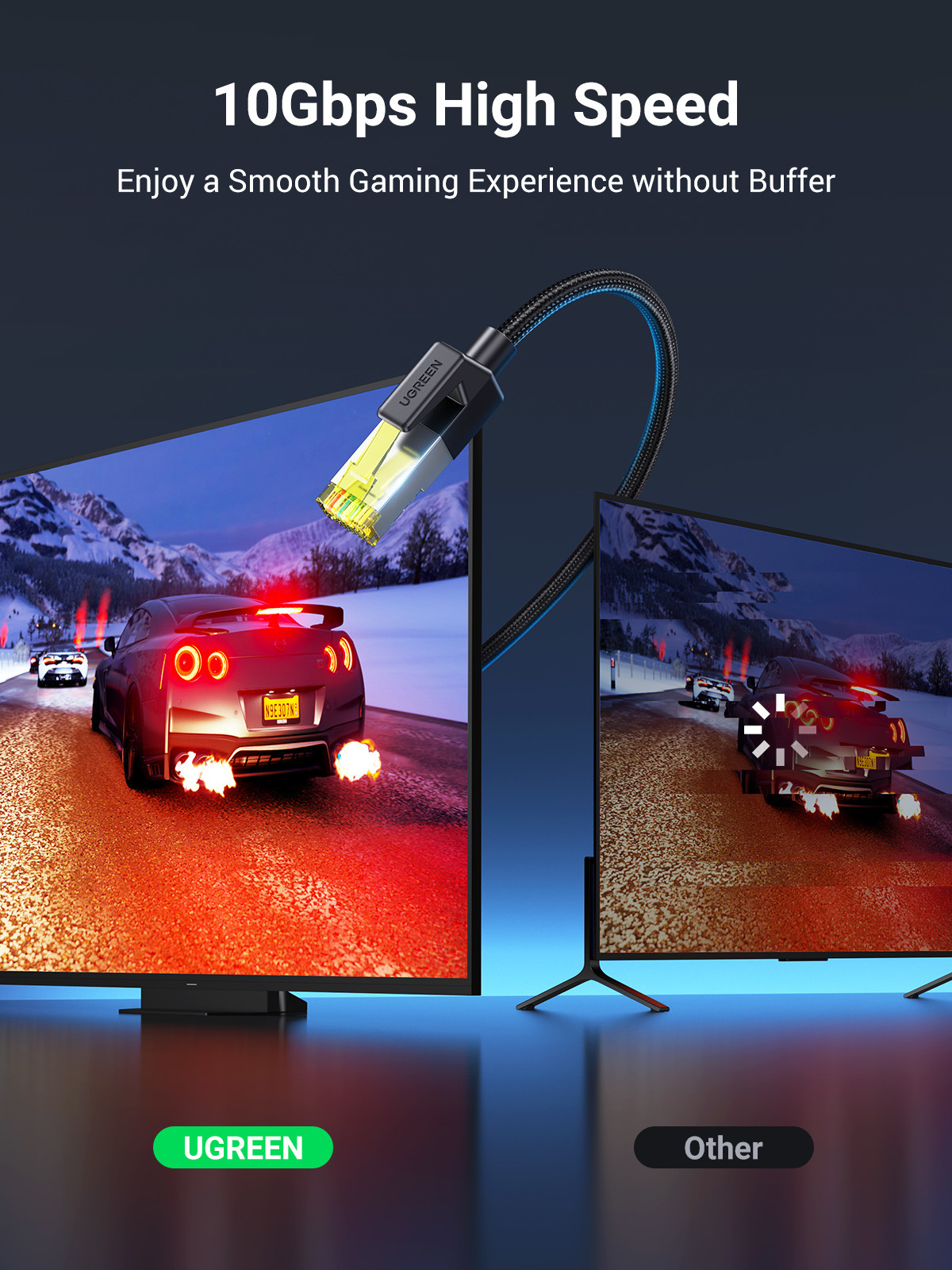 UGREEN Cat 7 Netzwerkkabel unterstützt bis zu 10Gbps Daten Übertragung und 600 MHz Bandbreite, viel schneller als CAT6 und weniger anfällig für Störungen. Es ist die beste Option für Spiele, Videostreaming Streaming von Videos, Herunterladen von grossen Dateien und mehr