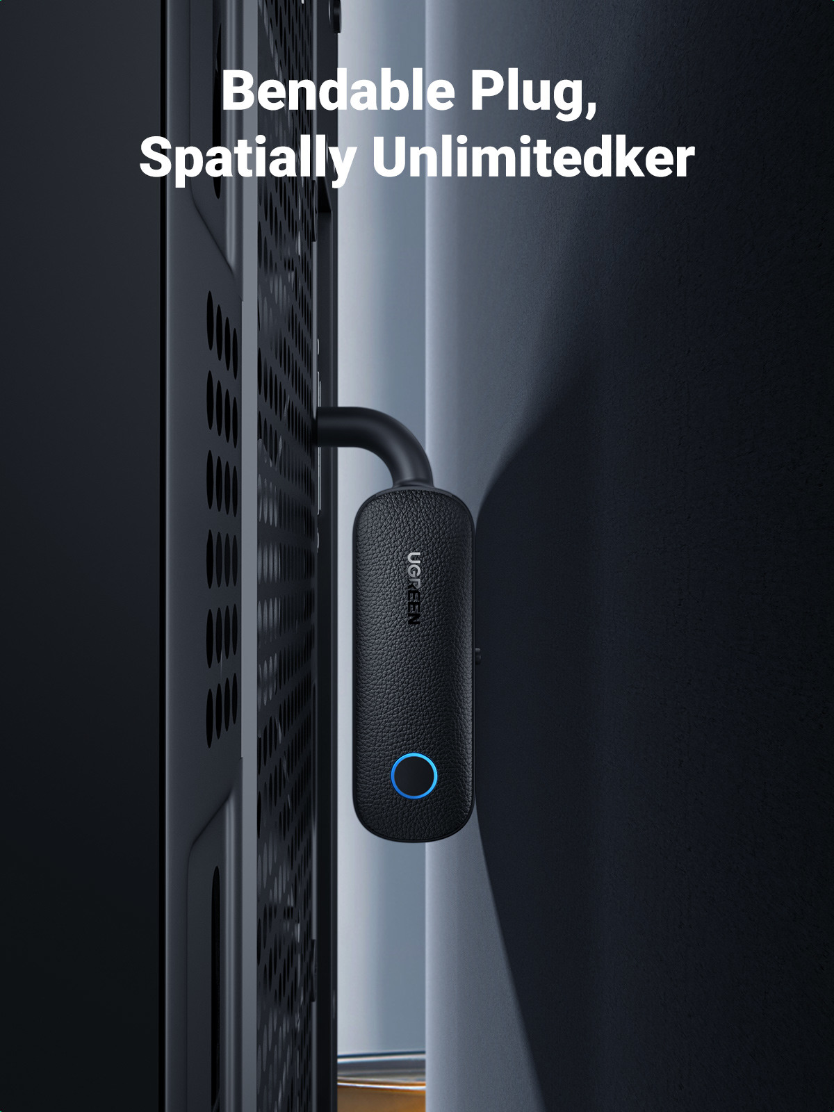 UGREEN 2 in 1 Bluetooth Splitter: Bluetooth Sender Klinke + Bluetooth Adapter Aux. Der 2 in 1 Bluetooth Splitter verfügt über Sender Modus und Empfänger Modus. Durch den Bluetooth Sender kann ein Fernseher ohne Bluetooth-Funktion die Wireless-Musik an den Bluetooth-Kopfhörer übertragen. Im Empfängermodus bringt der Bluetooth Audio Adapter einem Audioplayer ohne Bluetooth-Funktion dazu, die Wireless-Musik des Mobiltelefons zu empfangen. Der biegbaren Stecker ermöglicht es, den Bluetooth Splitter auf einen kleinen Raum hinter wandmontiertem Fernseher/Soundbar zu verbinden, und bietet mehr Verbindungsmöglichkeiten an.