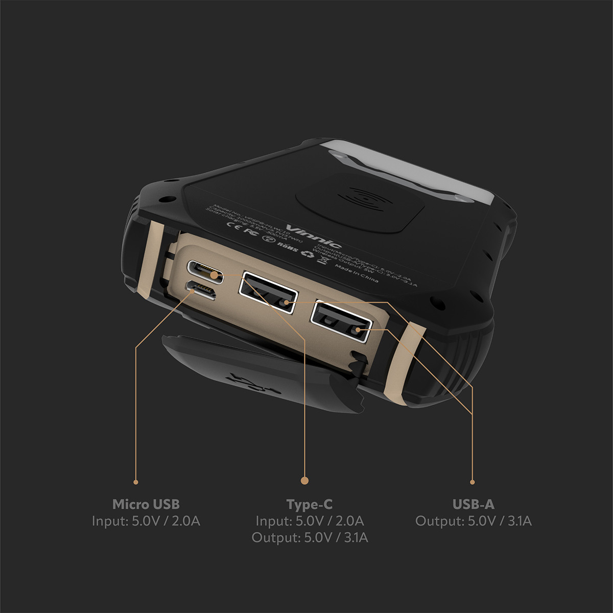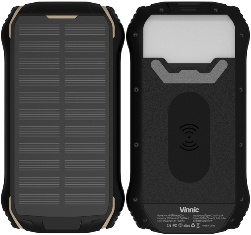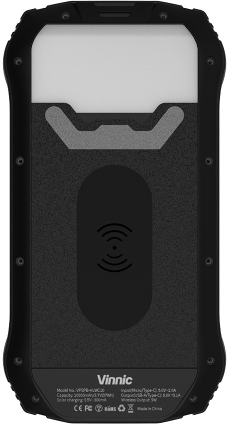 VINNIC Solar Powerbank 10'000 mAh VPSPB-HLWC10 w/LED Panel,Wireless Charg.
