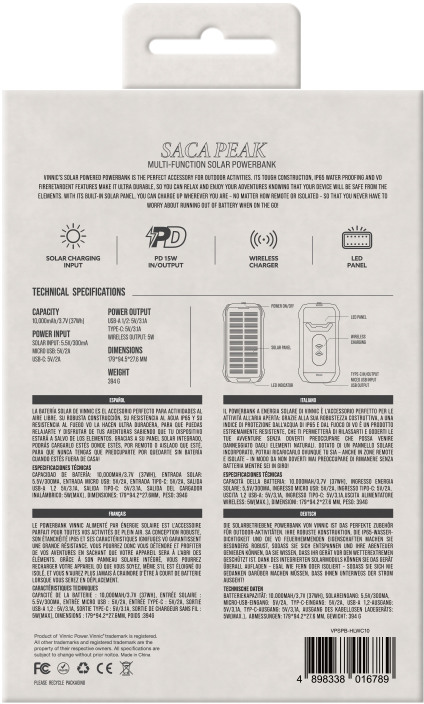 | Name: | VINNIC Solar Powerbank 10'000 mAh VPSPB-HLWC10 w/LED Panel,Wireless Charg. |