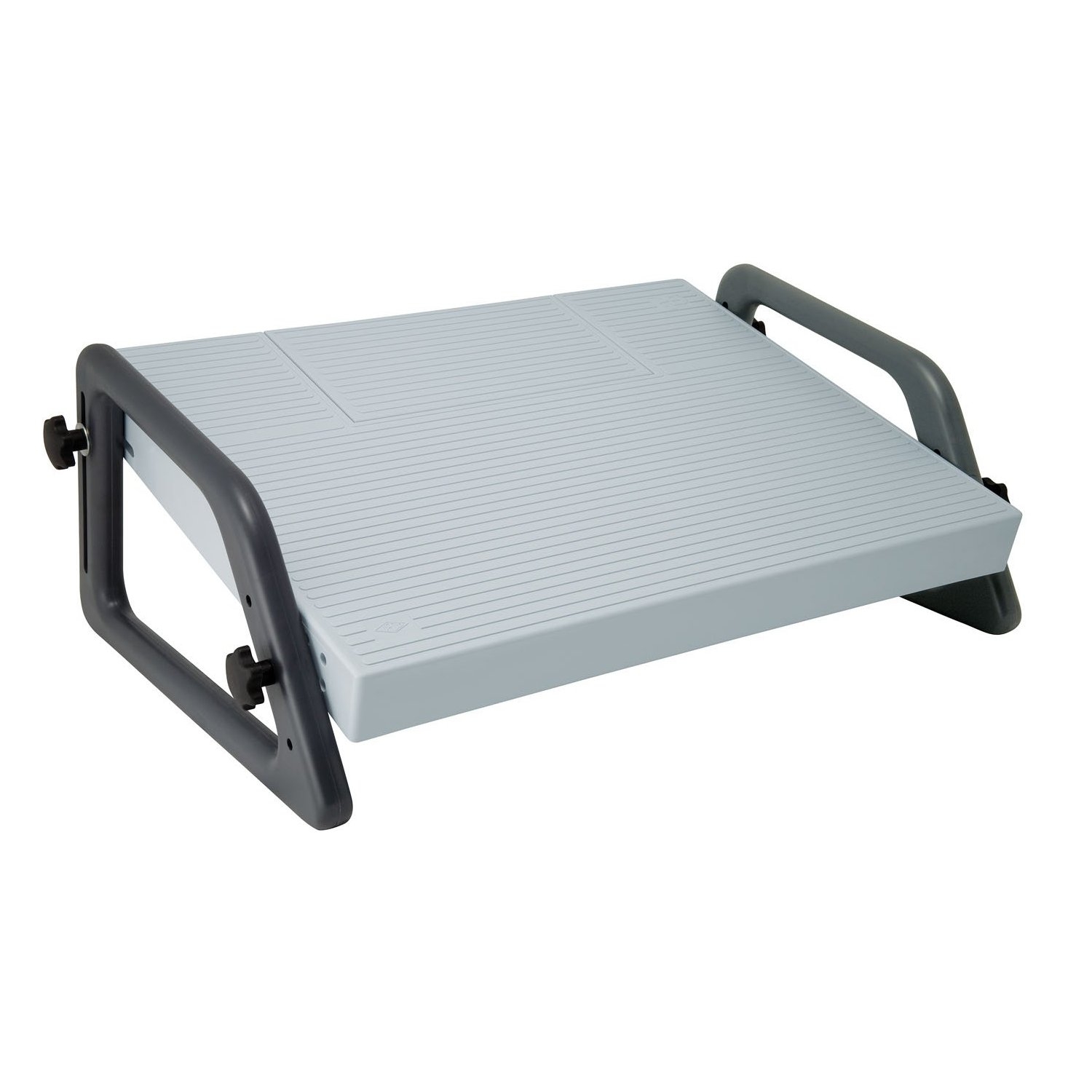 Aus bruchsicherem Polystyrol mit stufenloser Höhenverstellung. Ausgestattet mit einer Aussparung (22 x 12 x 2 cm) für den Einsatz eines Fussschalters (z.B. Diktiergerät). Standfest und rutschsicher durch aufgerauhte Trittfläche (45 x 35 cm). Diese Fussstütze entspricht der EU-Richtlinie für Bildschirmarbeitsplätze, der DIN-Norm 4556 und ist GS-geprüft. 3 Jahre Garantie. Die Fussstütze wird demontiert geliefert.