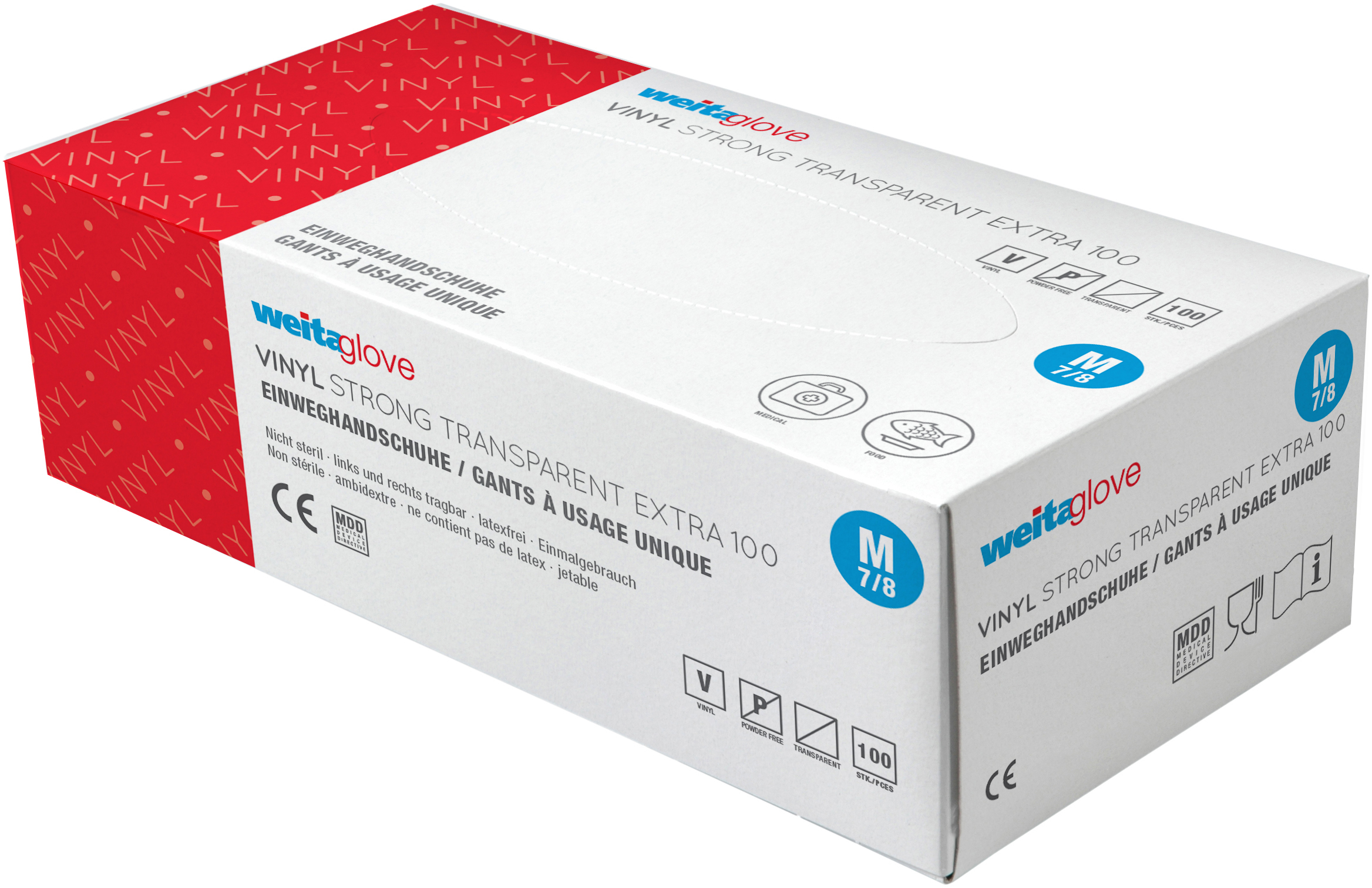 Produktinformationen "WEITA Einweghandschuhe Vinyl Gr. M 344651 Strong, transparent 100 Stück"