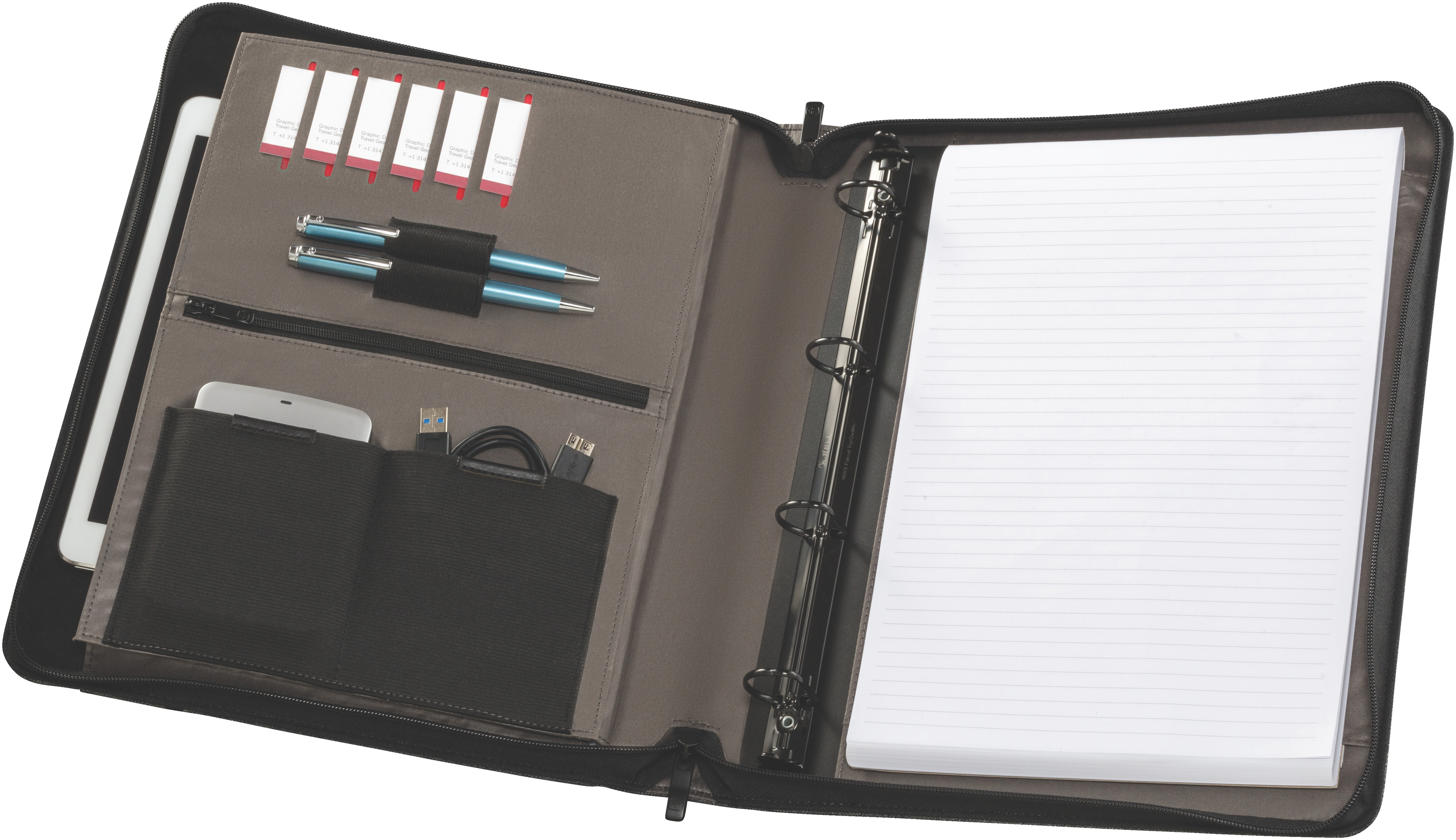 Zeigen Sie Ihren Sinn fürs Business mit der Affiliate Schreibmappe, in der Ihre Dokumente und wichtiges Zubehör übersichtlich aufgehoben sind. Ausgestattet ist sie mit einem linierten Notizblock sowie einem Fach für Ihre elektronischen Geräte, ein Tablet und Stifte – so sind Sie auf jedes Meeting bestens vorbereitet. Moderne Geschäftsleute werden die kompakte Schreibmappe zu schätzen wissen. Sie bietet viel Stauraum und überzeugt mit einem eleganten Touch.